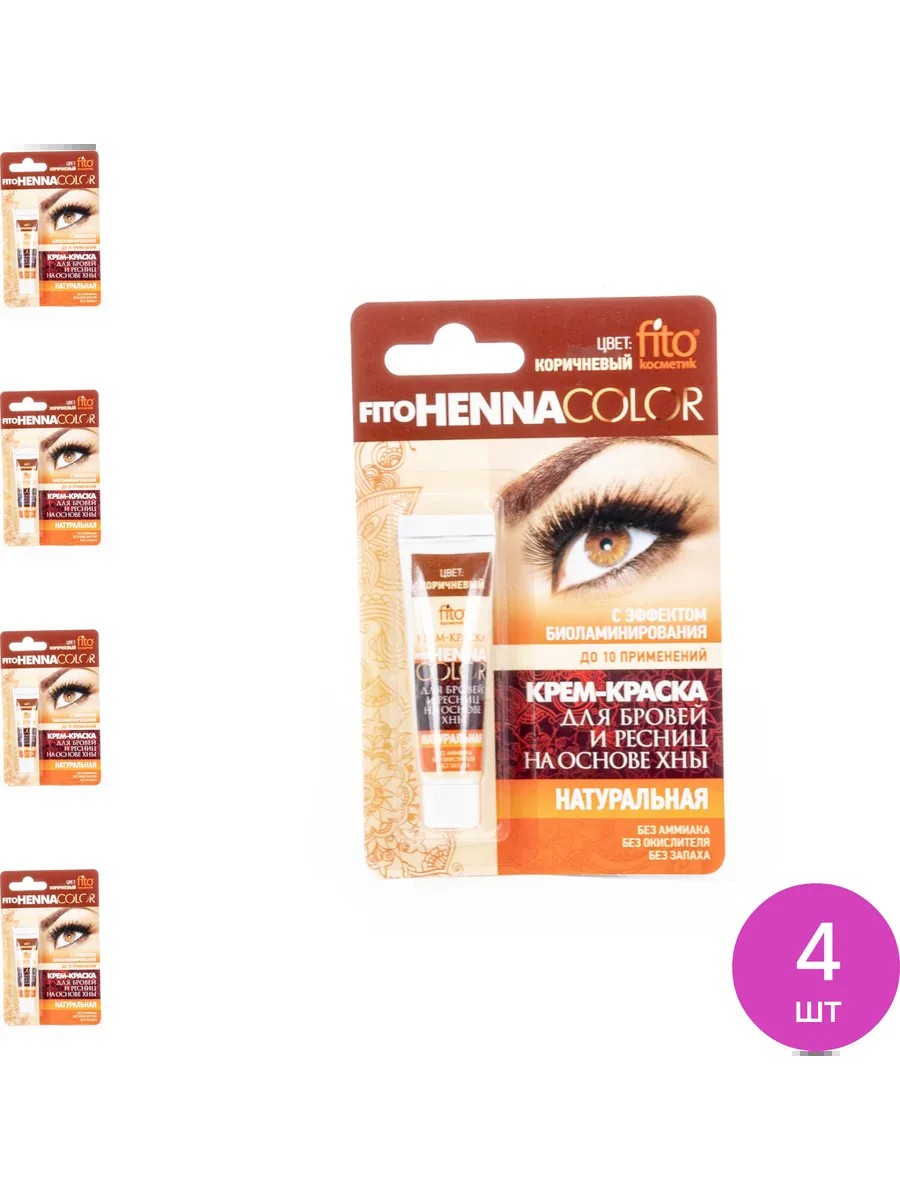 Fito Cosmetic / Fito Cosmetic Henna Color Cream Dye for Eyebrows and Eyelashes with a Natural Henna Base, Biolamination Effect, Brown Tone, 5ml / Permanent Makeup. Set of 4. Price per set. How to quickly and easily enhance your look? Fito Cosmetic eyebrow and eyelash tint will solve this problem! Fito Cosmetic will not only give your eyebrows a long-lasting, beautiful color but also protect your skin from irritation. The dye is specially formulated for facial areas. These eyebrow dyes have been praised by millions of people. Henna Color cream dye is the first eyebrow and eyelash dye with the maximum content of natural henna. Its formula does not contain ammonia or hydrogen peroxide. This cream dye flawlessly colors eyebrows and eyelashes with a deep, voluminous, rich color. The natural formula is enriched with natural oils and extracts that have a biolamination effect: they nourish, thicken, and improve the growth of eyelashes and eyebrows, making them strong and shiny, and your look bright and captivating. Brown is a rich, deep tone, and at the same time looks natural. Ingredients: water, henna extract, arctium lappa root oil, argania spinosa kernel oil, theobroma cacao seed butter, arnica montana extract, lavender extract, triticum vulgare germ oil, glycerin, xanthan gum, phenoxyethanol, eau de parfum, hc blue 2, basic brown 16. Directions: Apply the dye to clean eyebrows and eyelashes, rinse with water after 15-20 minutes. Perform a sensitivity test before use. In case of contact with eyes, rinse with plenty of water. With Fito Cosmetic, facial care and enhancing your look will turn into a celebration, as this dye can be used quickly, easily, and effectively right at home. Eyebrow and eyelash dyes / brown eyebrow and eyelash dye / eyebrow and eyelash treatment / eyebrow and eyelash care.