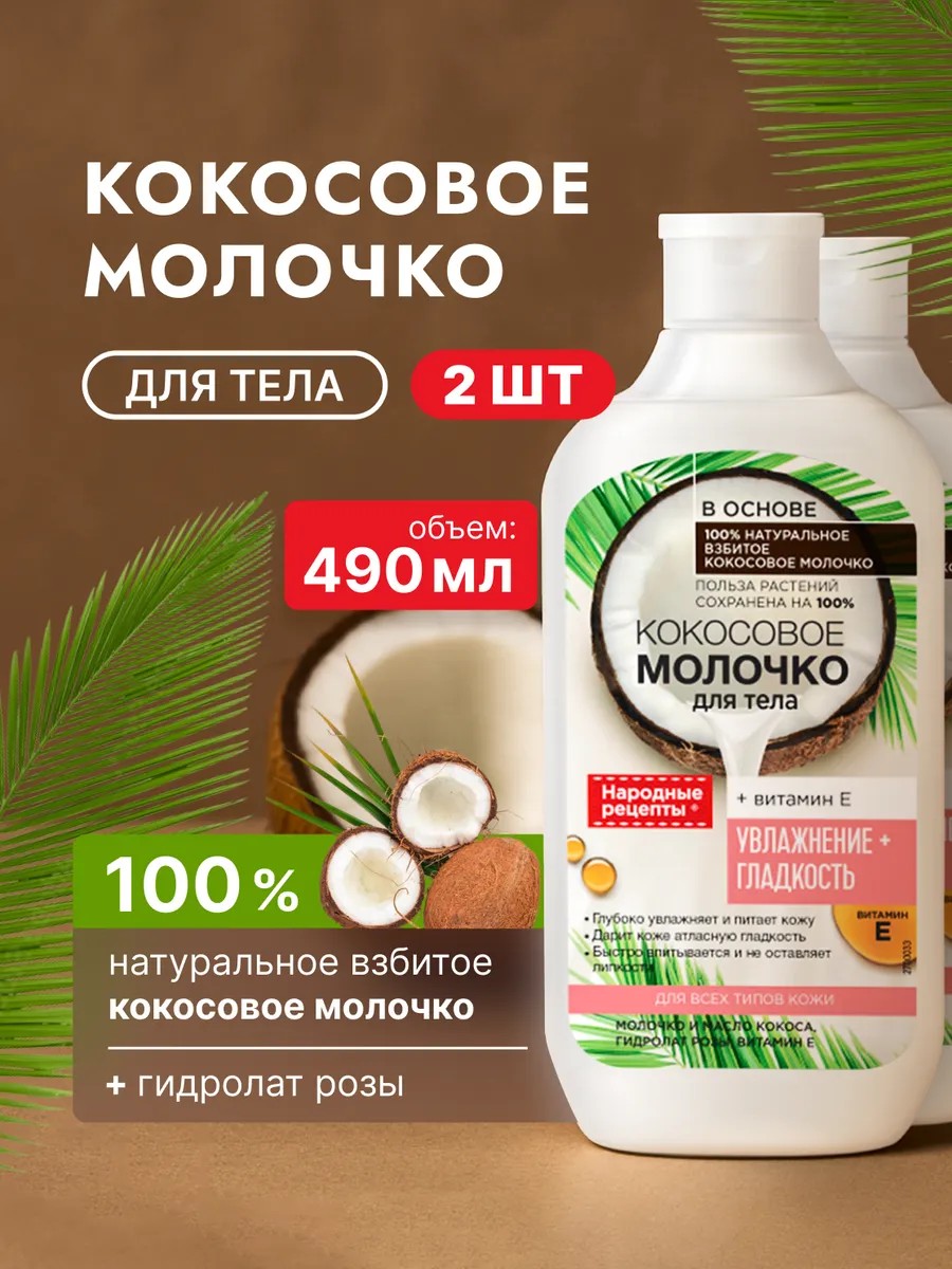 Кокосовое молочко для тела Народные рецепты 490 мл, 2 шт