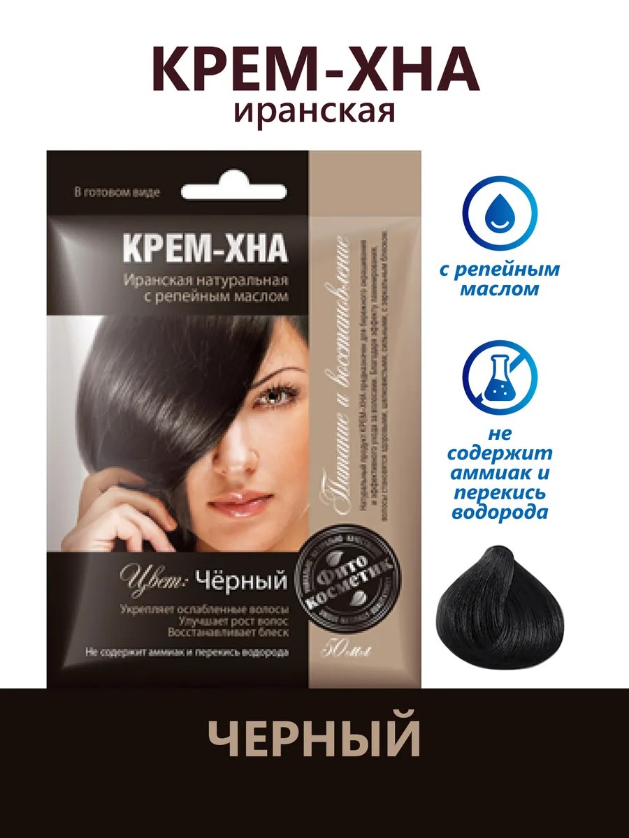 Iranian Henna - An innovative breakthrough in hair coloring. This natural dye, enriched with burdock oil, gives hair a deep, radiant color, intensely nourishes, moisturizes, restores, and revitalizes it. Black henna for hair infuses vitality and energy from root to tip, imparting dazzling shine and volume. Burdock oil enhances capillary circulation in the scalp, nourishing and strengthening the roots and hair structure. After using the henna cream, hair acquires a beautiful, rich color, becomes thicker, more elastic, bouncy, silky, and manageable.