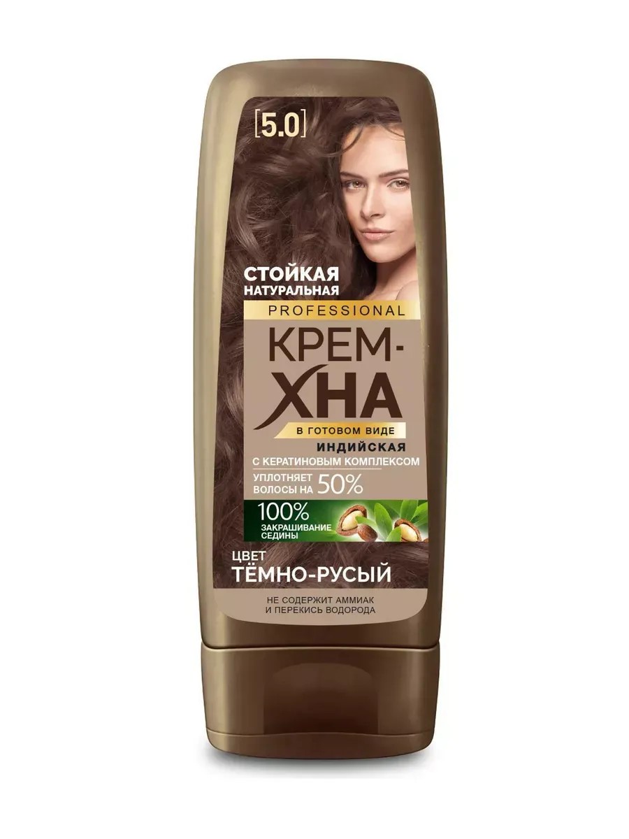 Fito Cosmetics Indian Cream Henna Professional, Shade 5.0 Dark Blonde, 140 ml. Ready-to-use Indian cream henna is the only natural plant-based dye for long-lasting coloring and total hair restoration. The innovative, enhanced formula, based on Indian henna, with argan and jojoba oils and healing extracts, penetrates deep into the hair structure, delivering a deep, rich, and radiant color. Cream henna flawlessly covers gray hair.