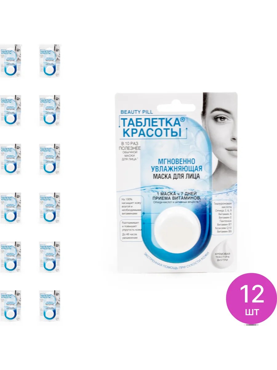 Fito Косметик Маска для лица мгновенно увлажняющая Таблетка Красоты с коэнзимом Q10, пантенолом, omega 3, 6, 9 и гиалуроновой кислотой 8мл / уход за кожей.