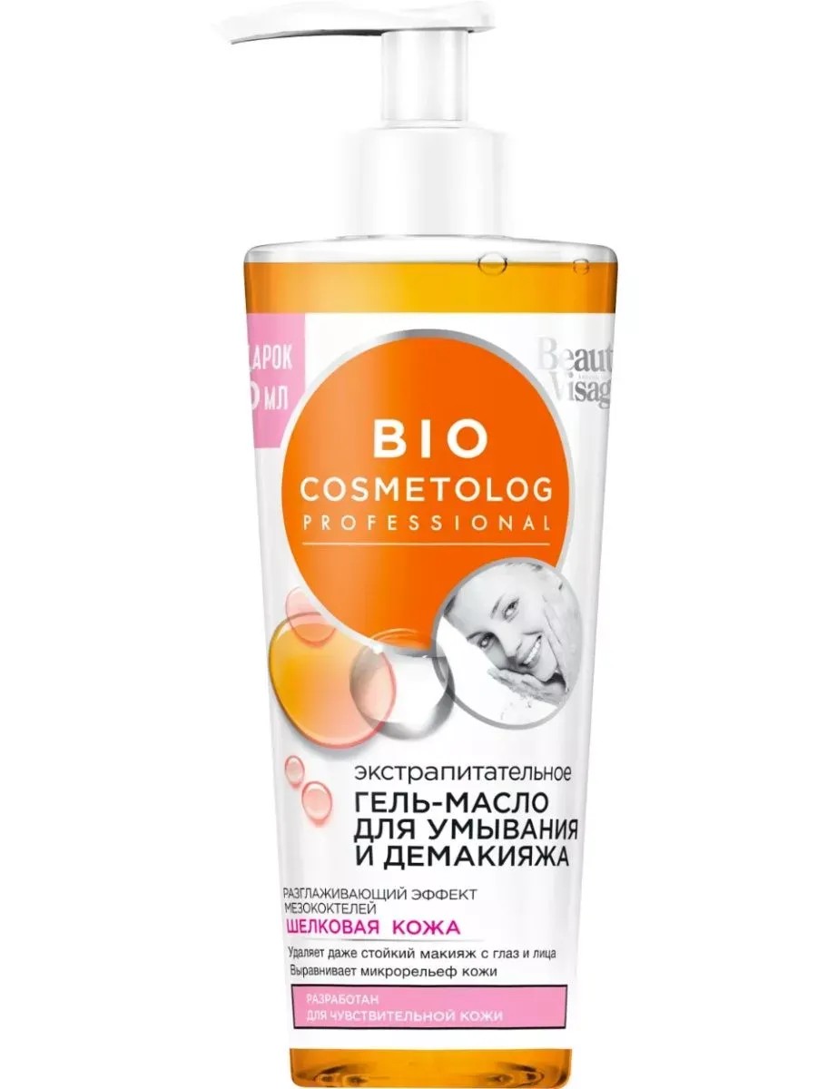 Фитокосметик BioCosmetolog Professional, Экстрапитательное гель-масло для умывания и демакияжа 260 мл. Эффективно удаляет макияж, не раздражая чувствительную кожу. Масло обогащено эксклюзивными активными компонентами, которые оказывают разглаживающий эффект мезококтейлей.Инновационная формула работает по принципу трасндермальности и позволяет активным компонентом работать на глубинном уровне: Стволовые клетки арганового дерева активизируют энергию клеток кожи и усиливают иммунитет к возрастным изменениям. Биопептиды CL и EL укрепляют и разглаживают кожу, придавая ей шелковую гладкость. Липосомный комплекс с витаминами С, E, A, и Омега-3 кислоты стабилизируют липидный барьер кожи, активно питают и смягчают кожу.Меры предосторожности: Для наружного применения. При попадании в глаза - промыть водой.