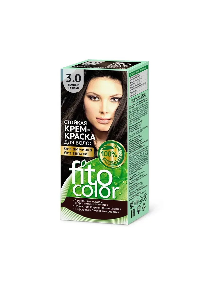 Fito косметик Fito color Краска для волос, тон 3.0 темный каштан, 115 мл. Нежная кремовая текстура средства, обволакивая каждый волос, глубоко проникает в его структуру и окрашивает в сочные, объёмные, яркие, цвета;