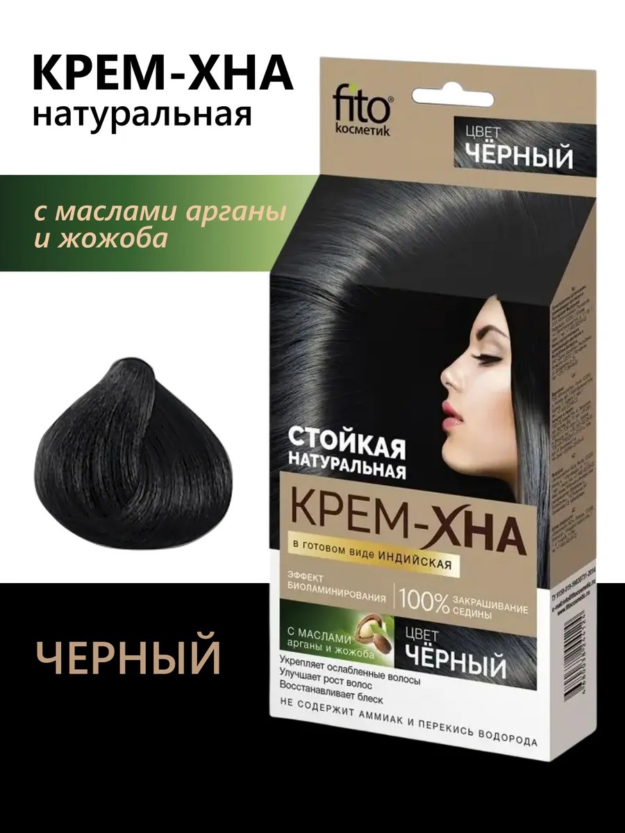 Индийская крем-хна в готовом виде - единственная натуральная растительная краска для стойкого окрашивания и тотального восстановления волос! Инновационная усиленная формула на основе лучшей в мире индийской хны, обогащенная маслами арганы, жожоба и целебными экстрактами, обволакивая каждый волос, глубоко проникает в их структуру, окрашивает в глубокий, насыщенный, сияющий цвет, восстанавливает структуру, активно питает, увлажняет, укрепляет корни, стимулирует рост здоровых и сильных волос. После использования Индийской крем-хны в готовом виде волосы выглядят великолепно: приобретают яркий, стойкий, объемный цвет, становятся более плотными, густыми, эластичными и упругими. Хна для волос черная безупречно закрашивает седину! Для использования крем-хны не требуется ни усилий, ни времени: ее не нужно смешивать с водой, она легко наносится, не течет и очень легко смывается.