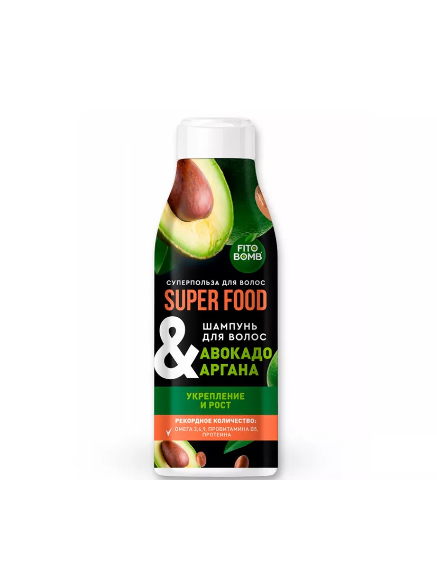Fito косметик Шампунь для волос Авокадо&Аргана Укрепление и Рост, 250 мл. Шампунь для волос с авокадо и маслом арганы – сила суперфудов для красивых волос. Он укрепляет волосы по всей длине и делает их более сильными и плотными. Авокадо насыщает волосы полезными жирными кислотами и необходимым витамином В. Масло арганы ухаживает от корней до кончиков и стимулирует рост. Волосы более сильные и упругие уже после первого применения.