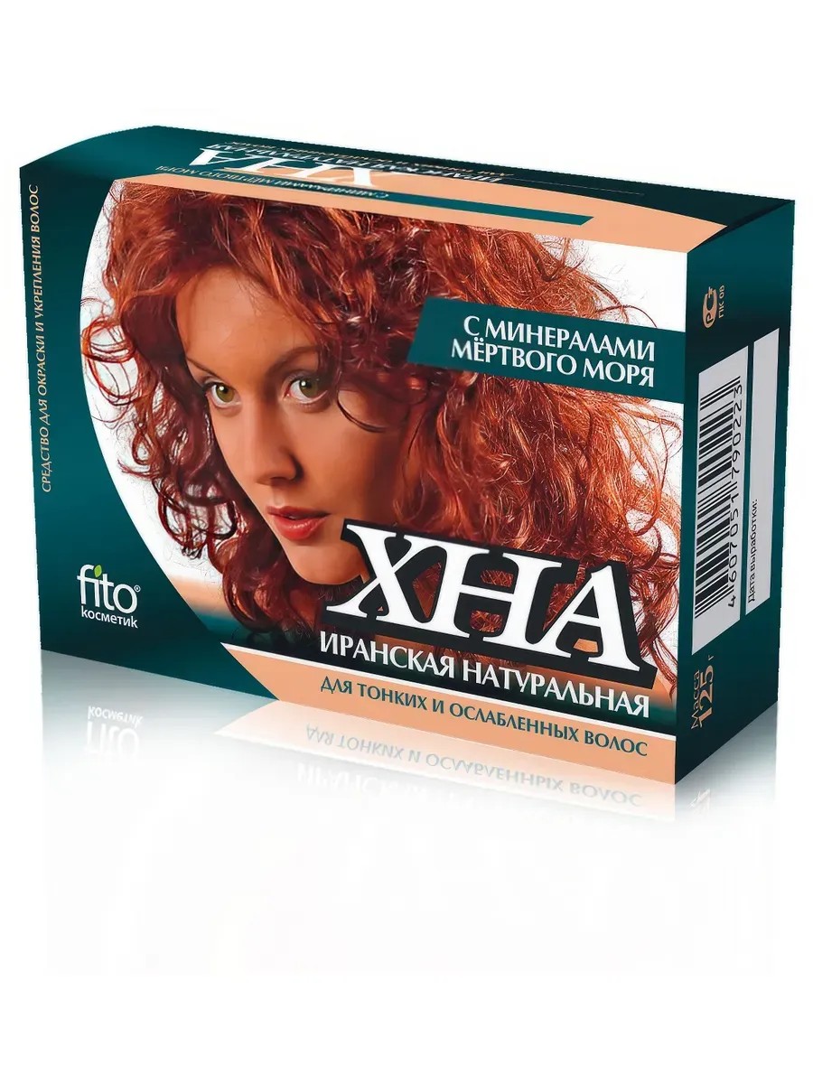Fito Cosmetic Iranian Natural Henna for Fine and Weakened Hair, with Dead Sea Minerals, 125g. Henna is designed for hair coloring, adding natural shine, improving hair structure, and strengthening the roots. Henna can produce a full range of shades, from golden yellow to dark chestnut. Darker shades are achieved when combined with henna and basma. Graying hair is dyed first with henna and then with basma. Dead Sea minerals complement the henna's action, softening the scalp and nourishing the hair roots and scalp with vitamins and nutrients. Ingredients: Ingredients: Iranian Natural Henna. Dead Sea Minerals. Directions for use: Apply the dye to dry, clean hair. Depending on hair length, add 25-100 grams of henna to water (at least 80°C) and stir until a smooth paste is formed. Using a brush, apply the mixture evenly to the back of the head, then to the crown and temples, and finally, dye the entire length of the hair. After you've dyed all your hair, massage it to ensure the henna is applied evenly and put on a warming cap. Dyeing time ranges from 30 to 60 minutes, depending on the desired shade. After dyeing, rinse your hair with warm water without shampoo.