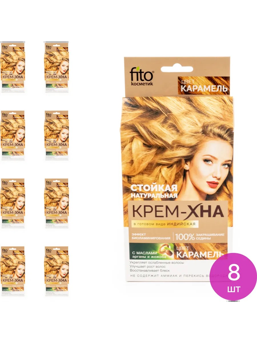 Fito Cosmetic / Fito Cosmetic Indian Hair Henna with Jojoba Oil, Caramel, 50ml / Coloring Product. Set of 8. Price per set. If you want to change your hair color but don't want to dye your hair with ammonia-based products, then natural hair henna will help you! Fito Cosmetic's Caramel Henna is a 100% natural product for beautiful and healthy hair. Natural jojoba oil and vitamins provide therapeutic care, adding smoothness and shine. The brown pigment in this ammonia-free colored henna is an intense dye that is suitable even for gray hair. Colored hair instantly acquires a caramel hue. This hair coloring product does not contain chemical dyes; the cream hair dye is safe and hypoallergenic. Your hair will acquire a caramel color, healthy shine, and luster with Fitocosmetic! Natural hair henna / cream hair henna / hair products / Indian hair henna / ammonia-free cream hair dye / tinted hair henna / henna hair dye.