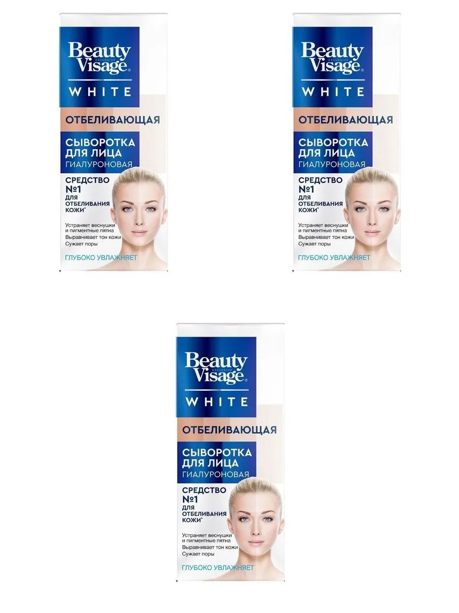 фитокосметик beauty visage white сыворотка для лица отбеливающая 30мл. осветляет кожу, устраняет пигментацию и выравнивает тон лица для осветления кожи экстракт лотоса, настой зеленого чая, экстракт алоэ, пантенол бренд фитокосметиксерия beauty visage whiteсыворотка для лица отбеливающая серии beauty visage white.гиалуроновая отбеливающая сыворотка для лица осветляет кожу, устраняет пигментацию и выравнивает тон лица.гиалуроновая кислота глубоко увлажняет, разглаживает, устраняет морщины и делает кожу более упругой и эластичной.spf 20 защищает от ультрафиолетового излучения и предотвращает появление веснушек и пигментных пятен.регулярное использование сыворотки великолепно осветляет кожу, устраняет пигментацию, предотвращает появление морщин и поддерживает оптимальный уровень влаги.нанесите 3-5 капель сыворотки на очищенную кожу, слегка помассируйте до полного впитывания.может использоваться самостоятельно, а также в сочетании со средствами вашего ежедневного ухода.