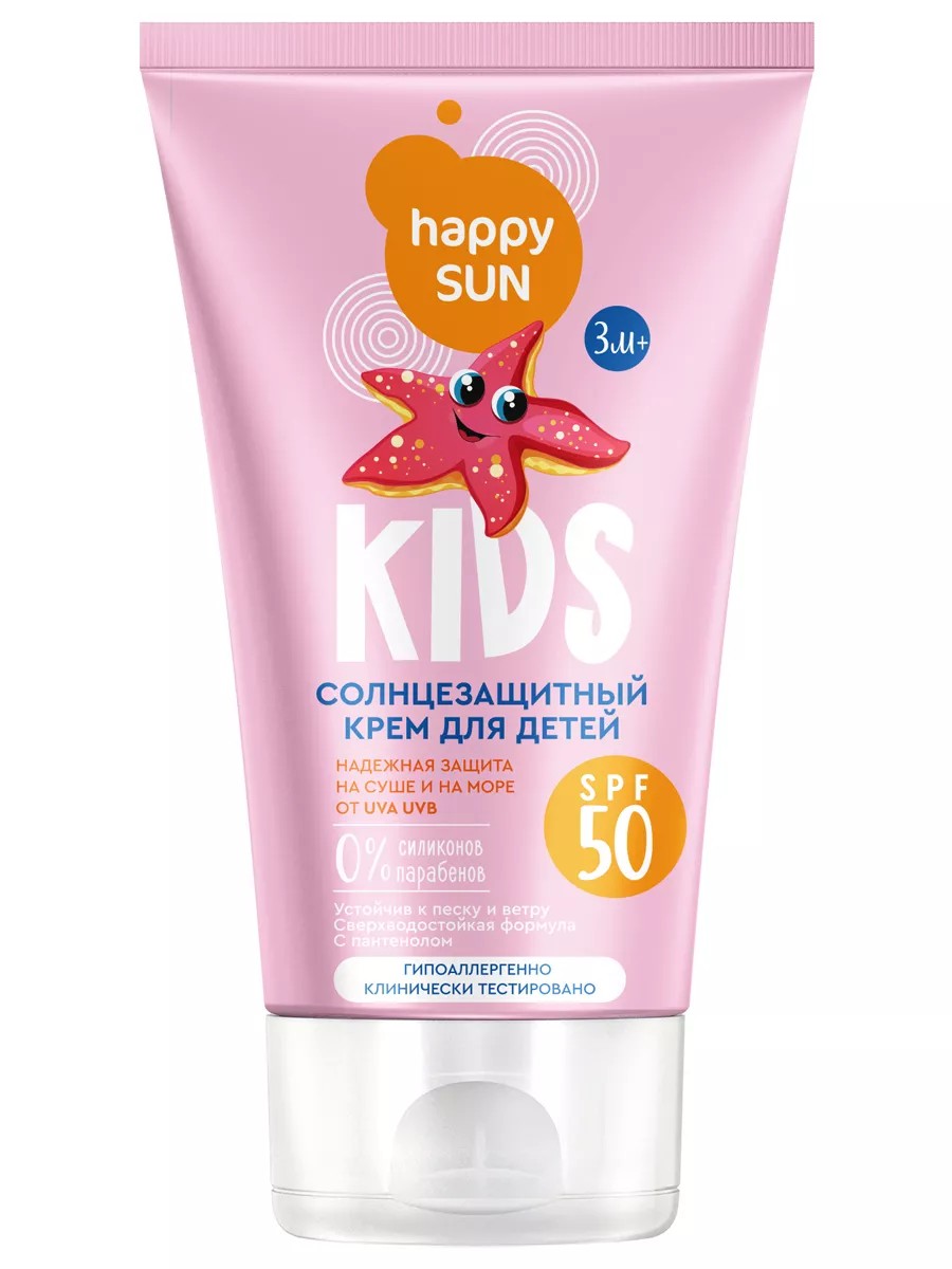 Happy Sun SPF 50+ Children's Sunscreen Cream from Fito Cosmetic provides reliable protection for babies' delicate skin from the harmful effects of ultraviolet rays during walks and swimming at the beach.