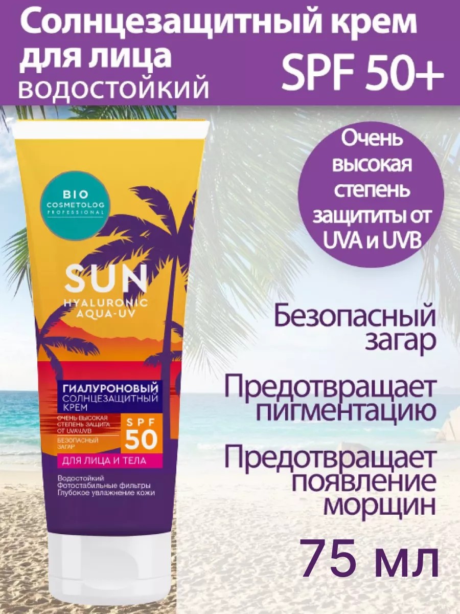 | Комплектация | Гиалуроновый солнцезащитный крем для лица Омолаживающий SPF50+, 50 мл- 1 шт. |