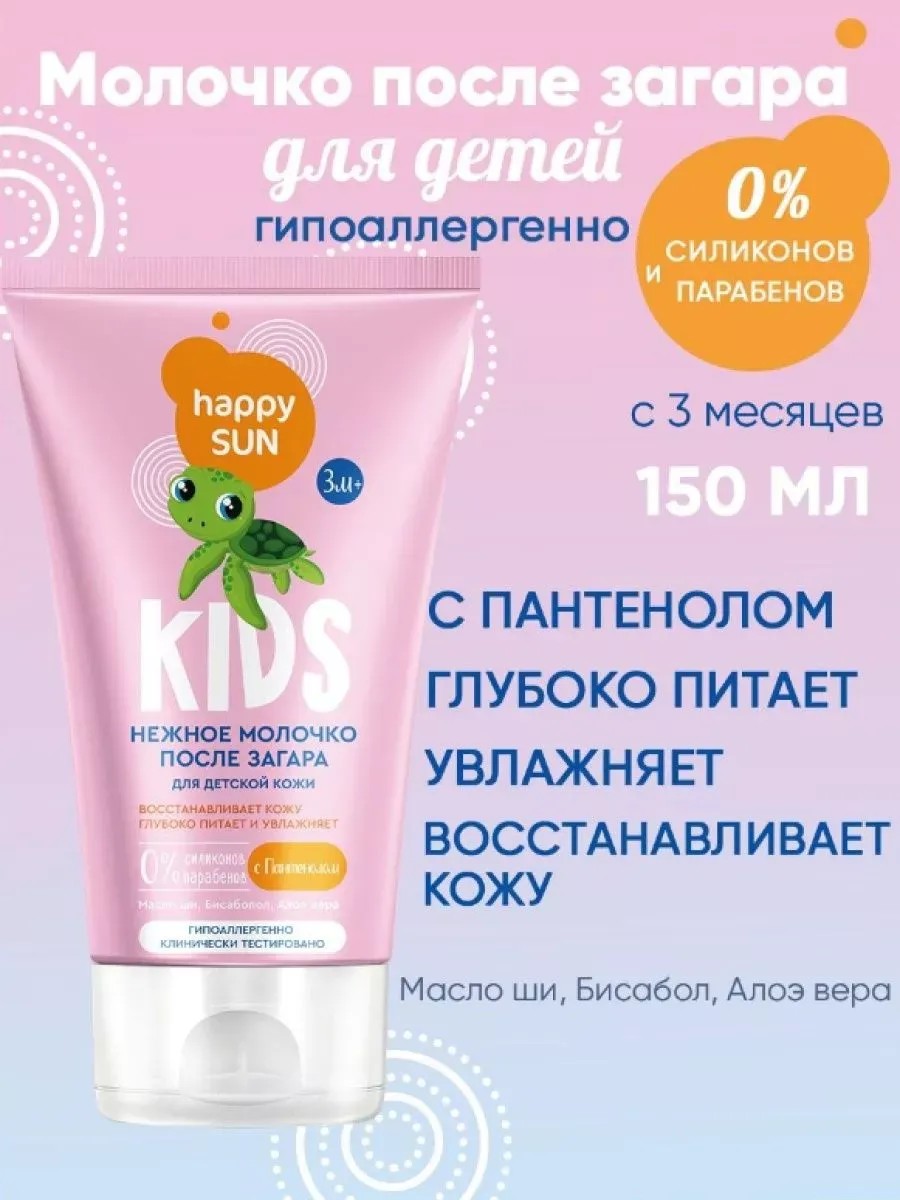 Фитокосметик happy sun молочко после загара для детской кожи восстанавливает нежную кожу малышей, смягчает и возвращает чувство комфорта. Молочко легко наносится и впитывается, не липнет, а его аромат нравится малышам.