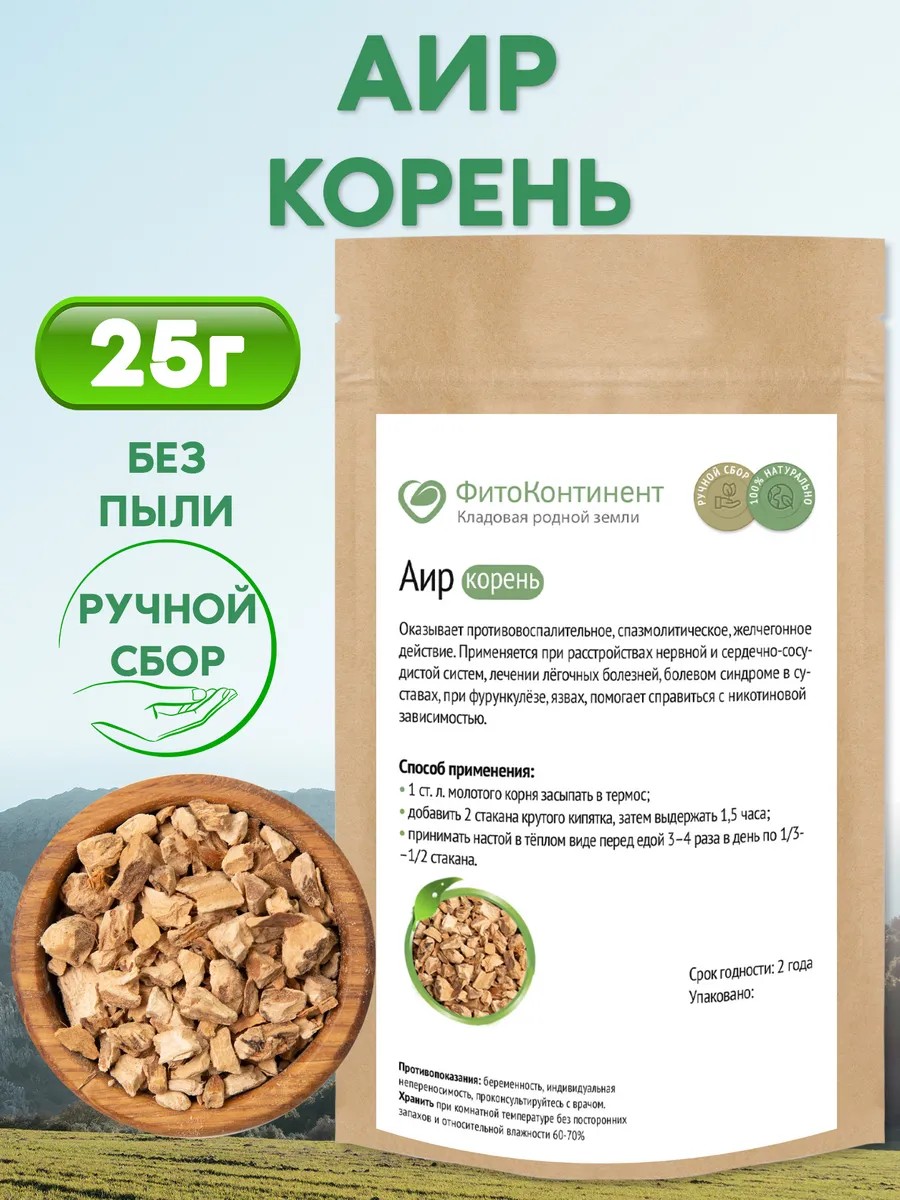 | Форма выпуска | травы для заваривания; фиточай; корень аира мелко-нарезанный |