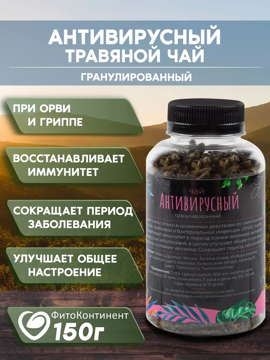 Обладает очень сильно выраженным деиствием по уничтожению, вирусной, грибковой и бактериальной инфекции. ОРВИ, грипп, восстанавливает иммунитет в период осенне-весенней активизации вирусных заболеваний, в целом улучшает общее психоэмоциональное состояние человека. Сокращает период заболевания. Состав: Чабрец, Душица, Чеснок, Бузина (кора), Имбирь (корень),