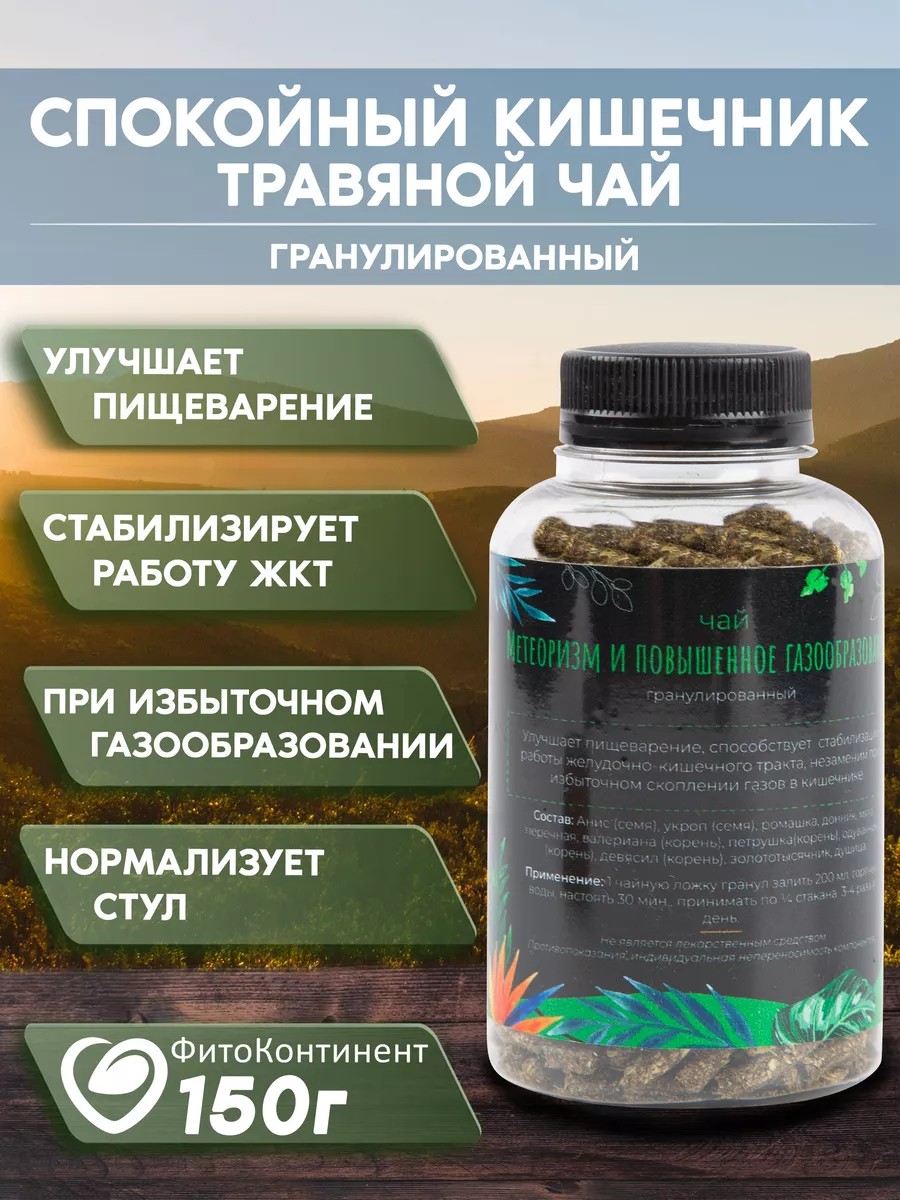 Сбор при метеоризме и газообразовании Спокойный кишечник помогает восстановить здоровье.Травяной сбор от газов действует не только на кишечник, но и на все органы пищеварительной системы, восстанавливая работу желудочно-кишечного тракта:улучшает отделение желчи и пищеварительных ферментов;борется с дисбактериозом;лечит воспалительные процессы, восстанавливает слизистую оболочку;нормализует стул;устраняет спазмы и боли, облегчает отхождение газов;регулирует работу нервной системы, хорошо помогает при синдроме раздраженного кишечника.В сборе При метеоризме и газообразовании лекарственные растения подобраны так, чтобы не только устранять вздутие живота, но и лечить саму причину этой проблемы.