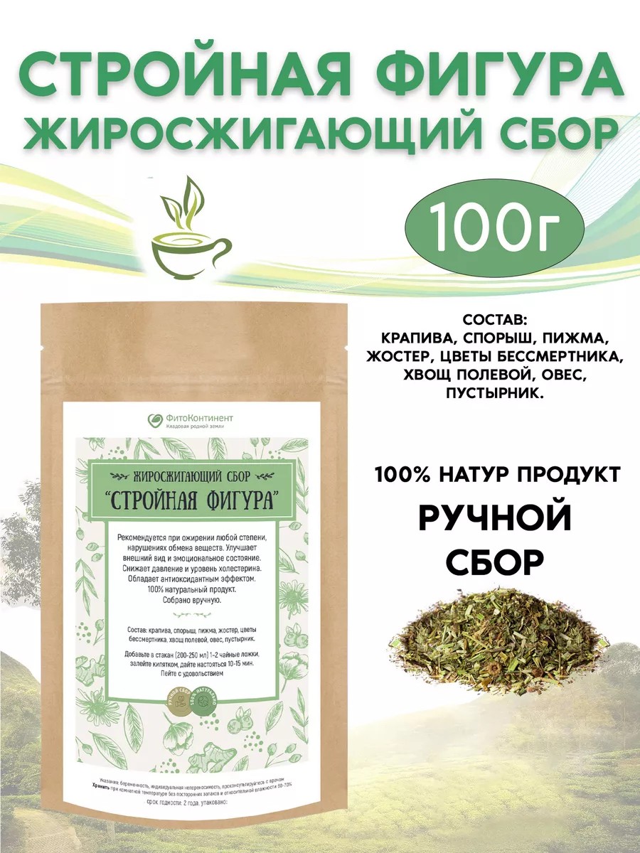 The fat-burning "Slim Figure" collection has a positive effect on the body, promotes the removal of excess fluid and the elimination of hidden edema, improves appearance and emotional state, normalizes bowel function, activates bowel cleansing, directly affects fat cells, causing the breakdown of lipids, coats the stomach walls, reducing hunger and promoting cell regeneration, tones, restores strength, strengthens the nervous system, facilitating the weight loss process, helps with concomitant diseases, lowers blood pressure and cholesterol, and has an antioxidant effect.