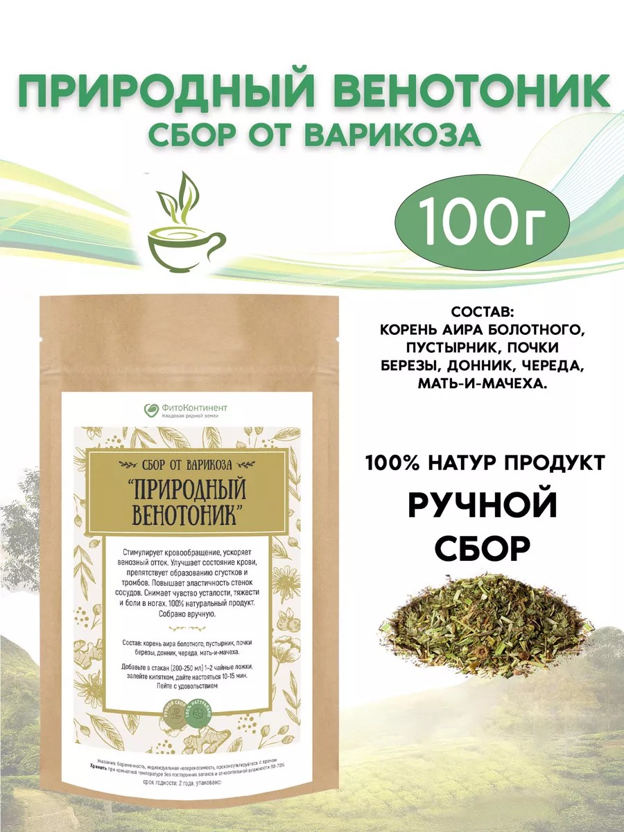 Сбор Природный венотоник от варикоза, травяные сборы, 100 гр