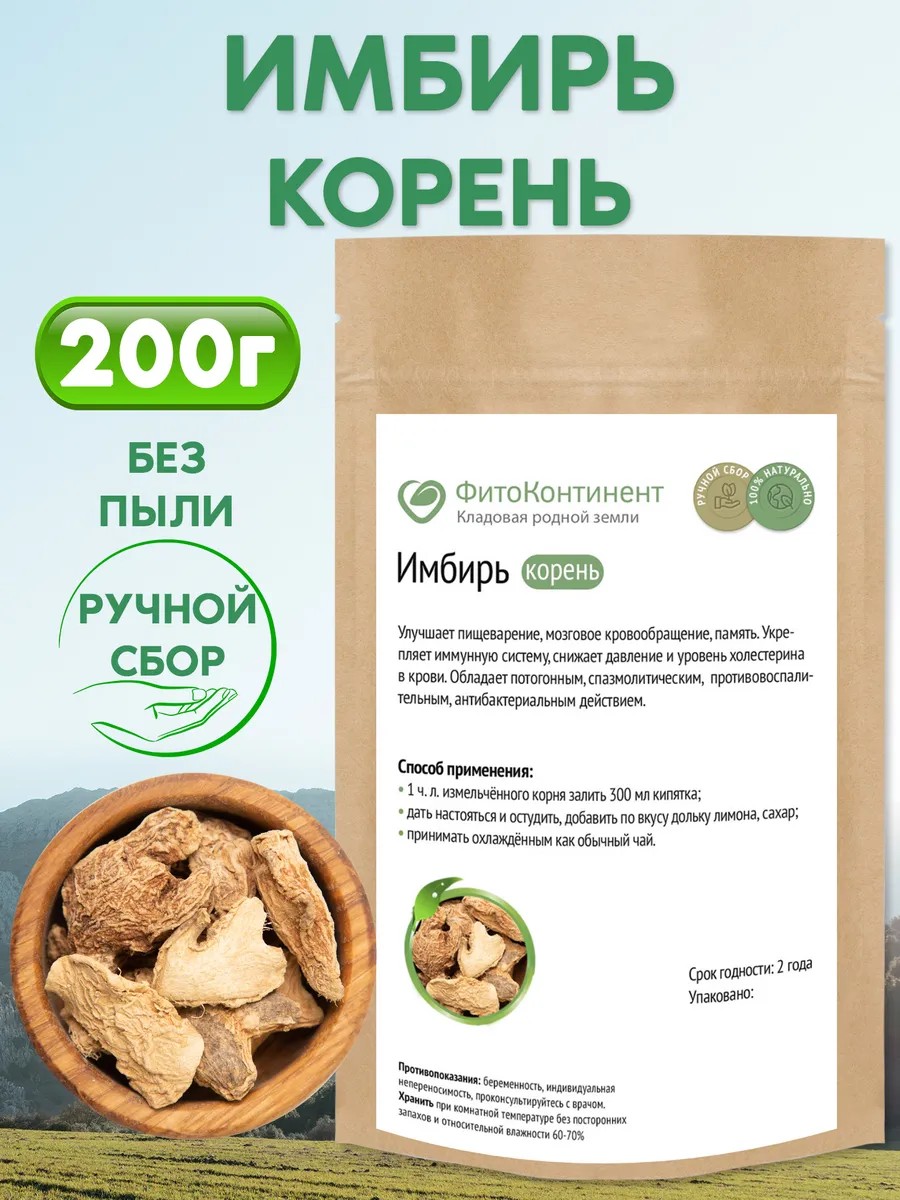 ФитоКонтинент Имбирь корень резаный, сушеный, 200гр