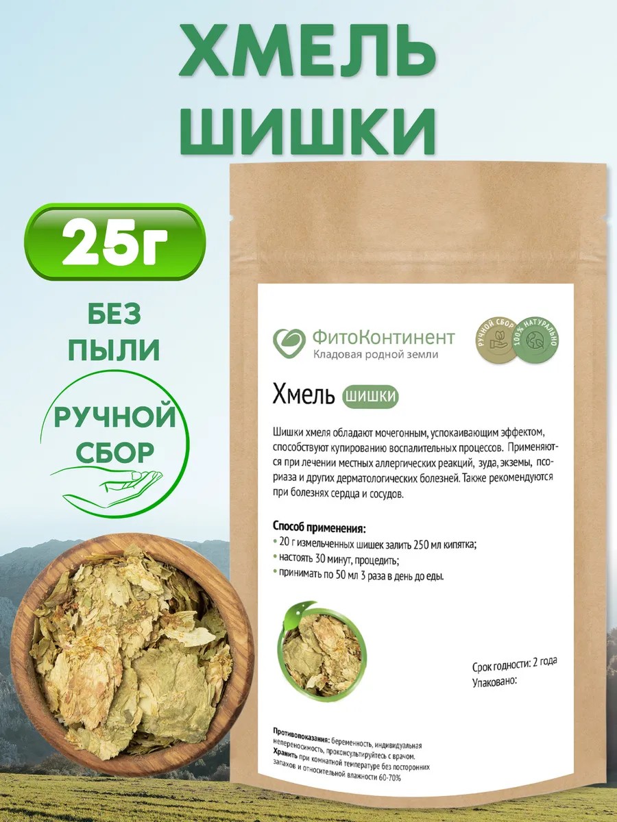 | Состав травяного сбора | Хмель шишки; Шишки хмеля натуральные 100% |