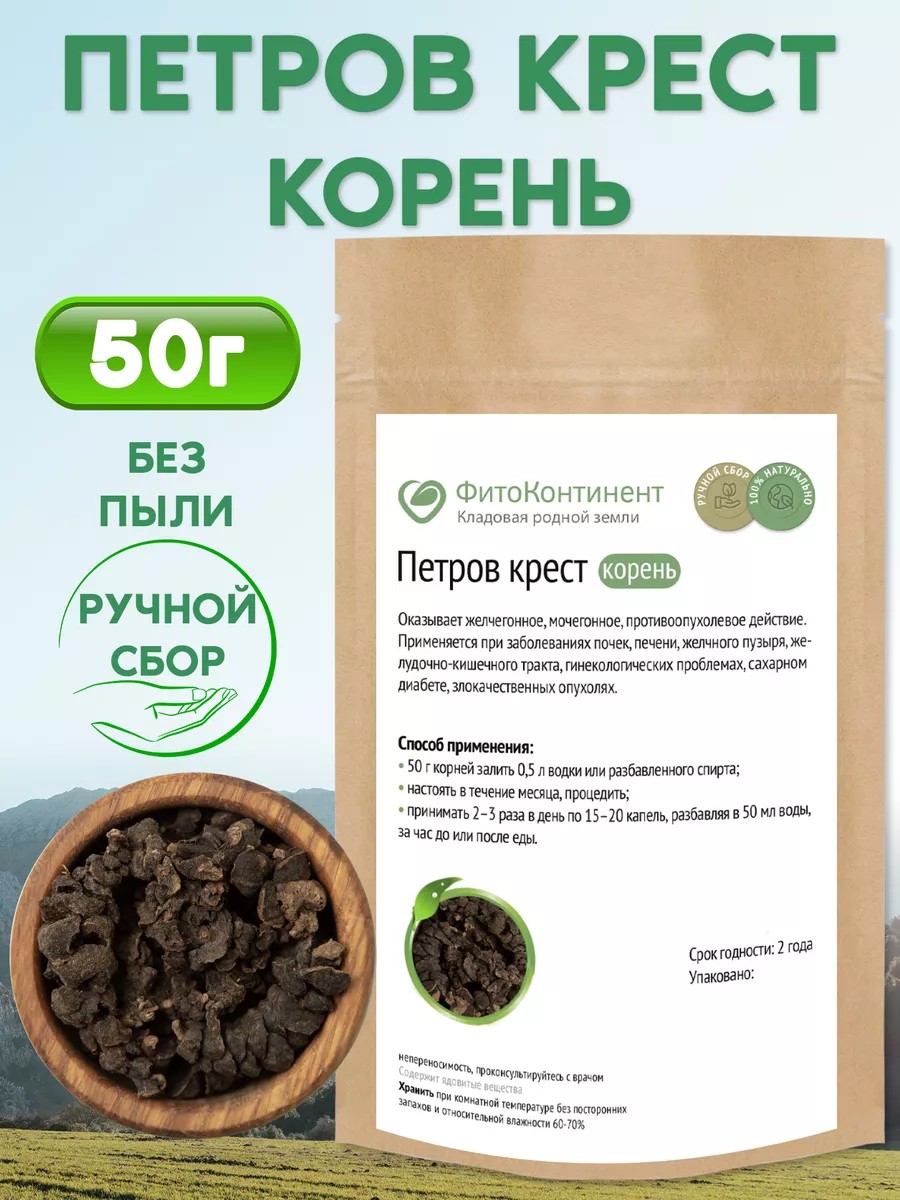 The root of St. Peter's cross is recommended for: liver diseases: hepatitis, fatty hepatosis, cirrhosis, ascites, dropsy; gallbladder damage: cholecystitis; kidney pathologies: glomerulonephritis; diseases of the gastrointestinal tract; Tinctures and decoctions of the root have a choleretic and diuretic effect, due to which they relieve edema, eliminate congestion, remove sand and small stones, and prevent the formation of large stones requiring surgical intervention. The plant's hepatoprotective properties protect the liver from toxins, accelerate its recovery after severe damage, and have an overall healing effect. Due to its ability to remove excess fluid and waste from the body, the plant's root promotes weight loss. Long-term use of the decoction restores bone fluid, improves the musculoskeletal system, activates kidney, liver, and heart function, and lowers blood sugar levels. The root of St. Peter's Cross is especially beneficial for gynecological problems. It relieves inflammation and pain and reduces the risk of cancer. The plant also helps women who want to conceive: St. Peter's Cross tones the uterine muscles and activates ovulation. Thanks to its unique properties, the root of St. Peter's Cross can treat illnesses for which conventional medicine is ineffective.