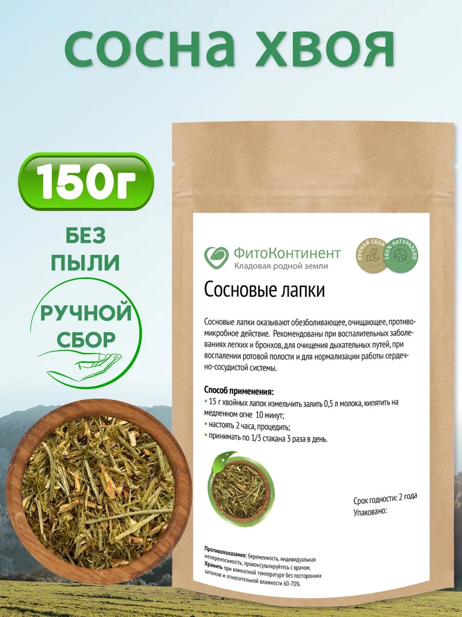 | Состав травяного сбора | сосновые лапки; сосна хвоя |