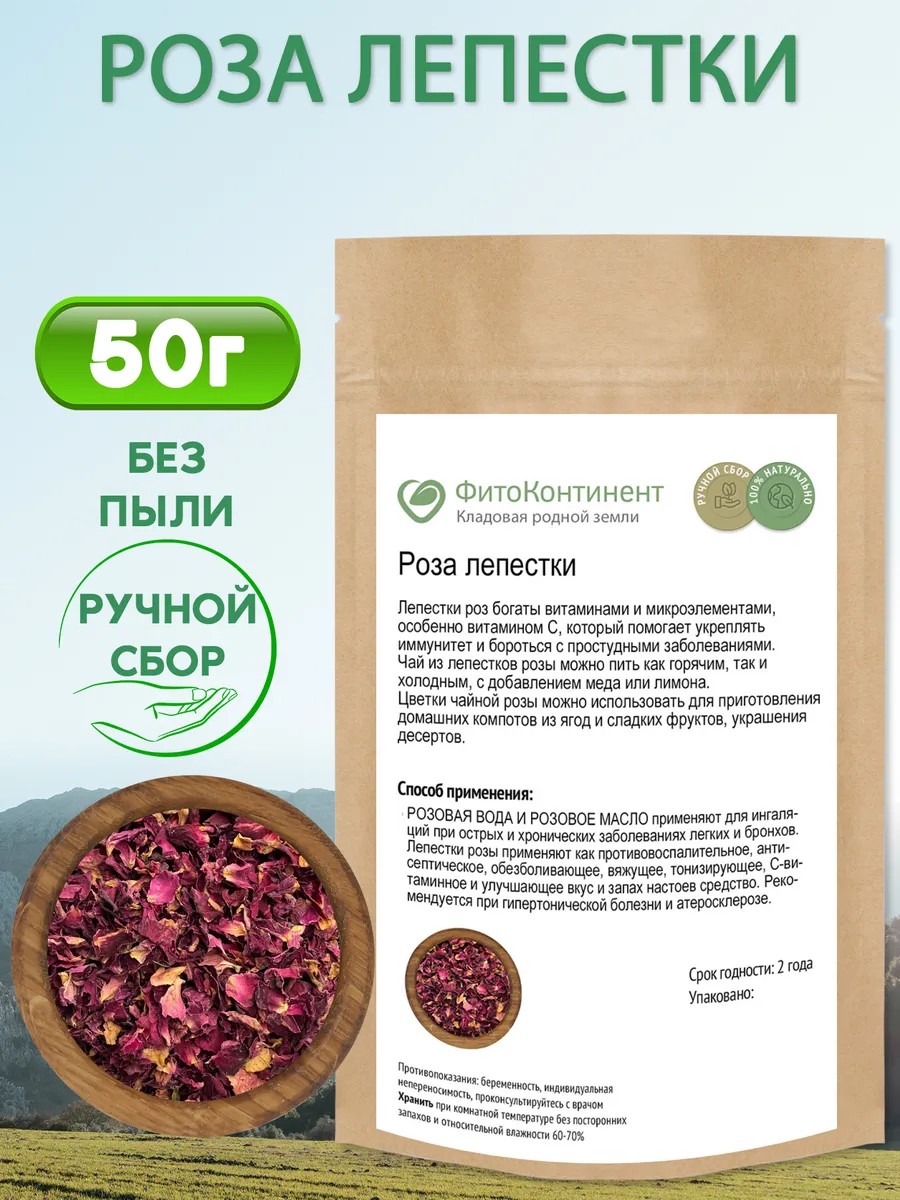 ФитоКонтинент Роза лепестки сушеные, 50 гр