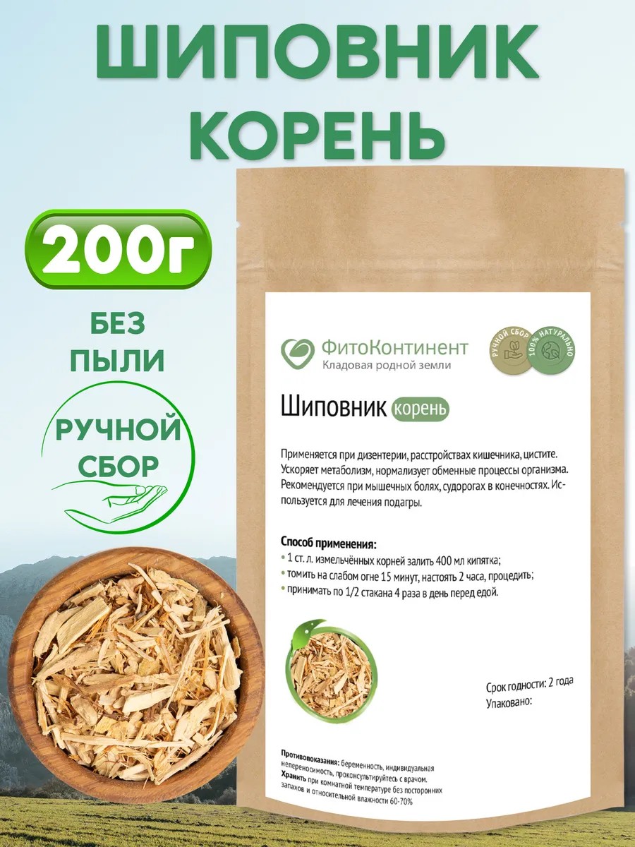 Rosehip root is recommended for: sleep disorders, insomnia, nervous exhaustion, memory impairment; metabolic disorders, weight loss, diabetes; eye diseases, including diabetic retinopathy; gallstones and urolithiasis, hepatitis, cirrhosis, and other liver diseases; bronchial asthma, chronic lung diseases; atherosclerosis, coronary heart disease, angina, arterial and venous diseases; bleeding tendency; healing skin and soft tissue wounds; problems with the genitourinary system, prostatitis. Its beneficial properties are used in most diseases. They are produced in the form of shavings of whole rhizomes up to 5 cm long. The natural healing properties of rosehip root include gentle yet effective strengthening of the immune system, restoration of strength, elimination of ascorbic and nicotinic acid deficiencies (vitamins C and PP), accelerated healing of wounds, erosions, and ulcers, and improved function of the heart, digestion, nervous system, and other organs. The beneficial properties of rosehip root. Folk and official medicine have long known the healing and beneficial properties of rosehip root. It is a natural immunostimulant and antioxidant, restoring the function of all organs and tissues. Rosehip root's properties are due to its high content of ascorbic acid, or vitamin C. It is rich in polyphenolic compounds and flavonoids, which enhance its antioxidant activity. The benefits of rosehip roots lie in their ability to restore damaged cells and normalize their function. Scientists have determined whether rosehip root is beneficial for inflammatory diseases. Scientific studies have proven that it has anti-inflammatory and analgesic effects, as well as an antitumor effect. For example, in cases of back pain, rheumatoid arthritis, osteoarthritis, and osteoporosis, the use of rosehip root is associated with improved blood counts, reduced pain, restored joint and spinal mobility, and a reduced need for painkillers. Unlike nonsteroidal anti-inflammatory drugs, rosehip roots do not have a harmful effect on the stomach or increase bleeding, so there are very few contraindications for their use. Rosehip roots have been shown to lower blood sugar levels in people with diabetes and prevent weight gain in these patients. They also help lower cholesterol and help with atherosclerosis and heart disease. The high ascorbic acid content of rose hips is beneficial for vitamin C deficiency, which often occurs in people who consume few fruits and vegetables. Vitamin C is effective in preventing colds, chronic fatigue syndrome, various ulcers, and skin and soft tissue damage. It is beneficial for weakened patients, the elderly, and children, as well as during recovery from surgery and serious illnesses.