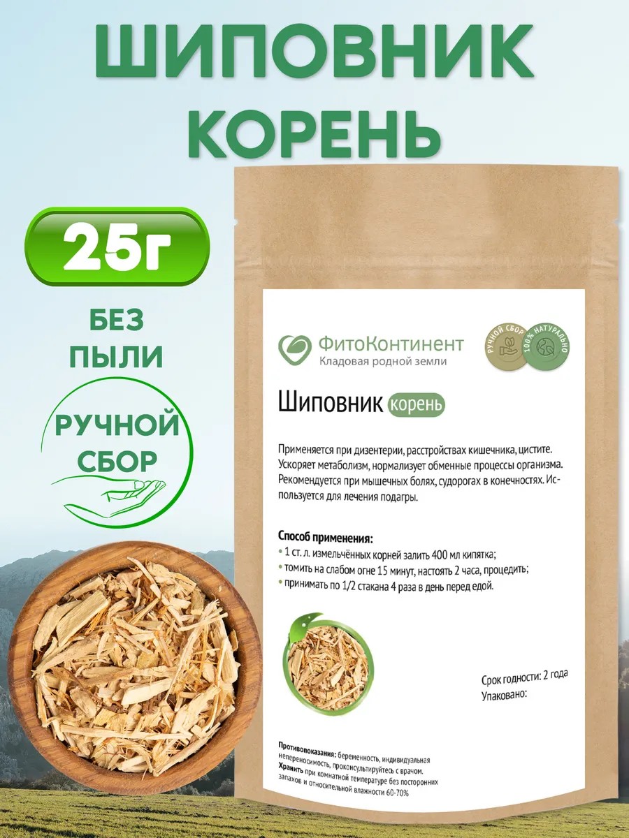 Шиповник корень рекомендуется:при нарушении сна, бессоннице, нервном переутомлении, ухудшении памяти;при неправильном обмене веществ, для уменьшения повышенной массы тела, при сахарном диабете;при заболеваниях глаз, в том числе при диабетической ретинопатии;при желчнокаменной и мочекаменной болезни,при гепатите, циррозе, других заболеваниях печени;при бронхиальной астме, хронических болезнях лёгких;при атеросклерозе, ишемической болезни сердца, стенокардии, заболеваниях артерий и вен;при склонности к кровотечениям;для заживления ран кожи и мягких тканей;при проблемах с мочеполовой системой, простатите.Их полезные свойства используются при большинстве заболеваний. Выпускаются они в виде стружки цельных корневищ длиной до 5 см. Природные целебные свойства корня шиповника — мягкое, но эффективное укрепление иммунитета, восстановление силы, устранение гиповитаминоза аскорбиновой и никотиновой кислот (витаминов С и РР), ускорение заживления ран, эрозий, язв, улучшение работы сердца, пищеварения, нервной системы и других органов.Полезные свойства корня шиповникаВ народной и официальной медицине давно известно, что лечит и чем полезен корень шиповника. Это природный иммуностимулятор и антиоксидант, восстанавливающий работу все органов и тканей. Свойства корня шиповника обусловлены высоким содержанием в них аскорбиновой кислоты, или витамина С. Он богат полифенольными соединениями и флавоноидами, которые усиливают его антиоксидантную активность. Польза корней шиповника заключается в их способности восстанавливать поврежденные клетки и нормализовать их работу.Ученые выяснили, полезен ли корень шиповника при воспалительных заболеваниях. Научные исследования доказали, что он обладает противовоспалительным и обезболивающим действием, а также имеет противоопухолевый эффект. Например, при болях в спине, ревматоидном артрите, остеоартрозе и остеопорозе применение корня шиповника сопровождается улучшением показателей крови, уменьшением болей, восстановлением движений в суставах и позвоночнике и снижением потребности в обезболивающих препаратах.В отличие от нестероидных противовоспалительных препаратов, корни шиповника не оказывают вредного воздействия на желудок и не усиливают кровоточивость, поэтому противопоказаний к их применению очень мало.Доказано, что корни шиповника снижают уровень сахара в крови у людей с диабетом и предупреждают увеличение веса у таких пациентов. Также они способствуют снижению количества холестерина, помогает при атеросклерозе и болезней сердца.Высокое содержание аскорбиновой кислоты в корнях шиповника полезно при недостатке этого витамина, который часто возникает у людей, потребляющих мало овощей и фруктов. Витамин С эффективен для профилактики простудных заболеваний, синдрома хронической усталости, различных язвах, повреждениях кожи и мягких тканей. Он полезен для ослабленных пациентов, пожилых людей и детей, а также при восстановлении после операций и тяжелых болезней.