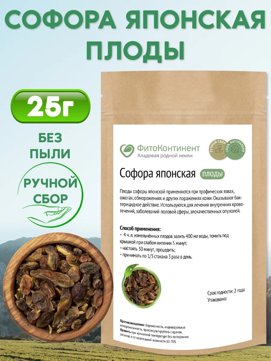 Софора японская плоды рекомендуется:при внутренних кровотечений (в мозг, клетчатку глаза, сердце);склеротических повреждений сосудов, язвенной болезни желудка и 12-перстной кишкигастритов, колитов, стенокардии, гипертонии, красной волчанки и псориаза;особенно следует отметить способность софоры снижать уровень холестерина и сахара в крови (ввиду высокого содержания рутина), что в комплексе с Омелой белой делает ее ценнейшим средством для борьбы с диабетом;при экземах, трофических язвах;при всех видах злокачественных опухолей;заболеваниях почек, печени, аллергии, ревматизма, гипертонии, сахарного диабета, туберкулеза, инсульта и его последствий;заболеваниях женской половой сферы, аденомы простаты.Полезные свойства софоры японскойСофора японская — растение, в последние десятилетия ставшее очень популярным в России благодаря своим целебным свойствам.Софора богата флавоноидами, особенно рутином, который укрепляет капилляры и препятствует увеличению их проницаемости. Этот элемент применяется при терапии сахарного диабета, в случаях заболевания корью и тифом. Но особенно эффективно его использование в борьбе с сердечно-сосудистыми заболеваниями.Считается, что систематическое применение софоры способствует снижению давления и препятствует угрозе возникновения инсульта. Софорой лечат гипертонию и стенокардию, она приостанавливает склеротическое расслоение стенок сосудов.Плоды растения усиливают двигательные функции мышечной системы. Они также стимулируют сокращение гладкой мускулатуры матки.Плоды софоры японской оказывают положительное действие и при различных суставных заболеваниях, облегчают состояние больных ревматизмом, артритом, артрозом. Они снимают воспалительные процессы в сосудах, укрепляют ткани, способствуют выведению инфекции из организма. При простуде ими лечат насморк и ячмень. Препараты на основе софоры обладают также успокоительным действием и повышают аппетит.Хорошо известны свойства плодов софоры японской и при терапии таких заболеваний как геморрагический васкулит, сыпной тиф и туберкулез ранней стадии.Настойка из плодов растения находит внешнее применение в качестве бактерицидного средства, способствующего заживлению сильных повреждений кожного покрова. С ее помощью промывают и орошают глубокие незаживающие и гнойные раны. Настойкой также пропитывают повязки, накладываемые на трофические язвы, места обморожений, ожогов и высыпаний при кожных заболеваниях, угрях. Она эффективна при псориазе и лишаях, волчанке, экземе, кожном туберкулезе, пролежнях, грибковых заболеваниях и фурункулезе. Ее применяют и при некоторых болезнях печени и легочных кровотечениях.Софора известна также как средство, повышающее иммунитет и укрепляющее защитные силы организма. Она способствует облегчению состояния больного при лучевой болезни. Растение привлекает ученых-медиков и своими антиоксидантными свойствами, способностью очищать организм и предотвращать преждевременное старение.
