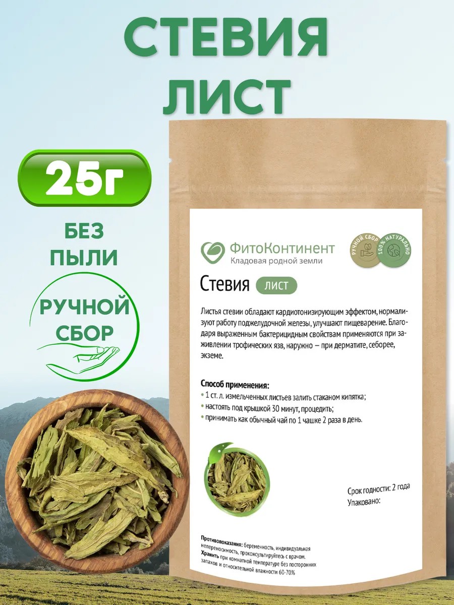 | Состав травяного сбора | Стевия листья 100% |