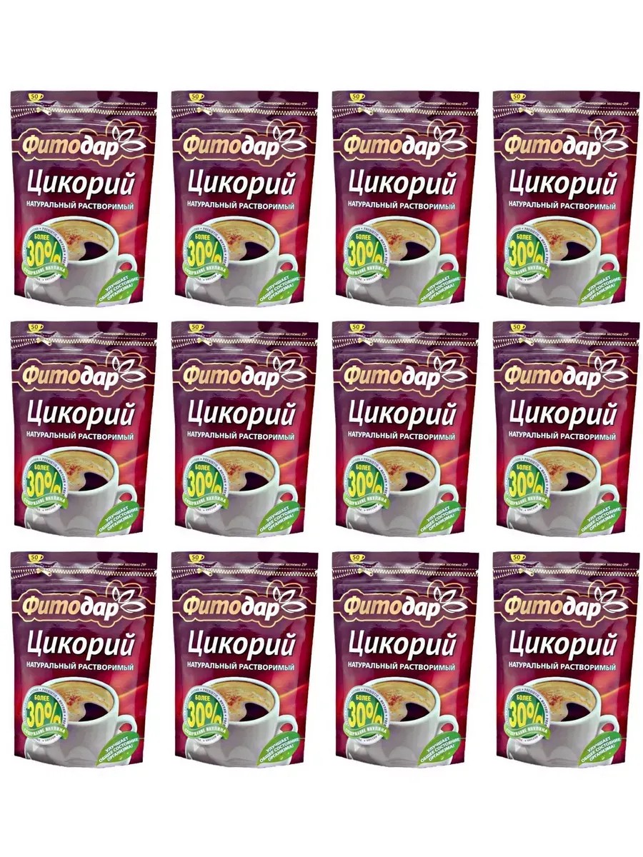 Fitodar Natural Chicory Instant Powder 100g. When prepared, chicory produces a light-brown drink with a more pronounced flavor and hints of bitterness. It contains 100% natural chicory without any cheapening additives or impurities, which is what causes its natural bitterness. Ingredients: chicory extract, ginseng. Set of 12 pieces, 100g each.