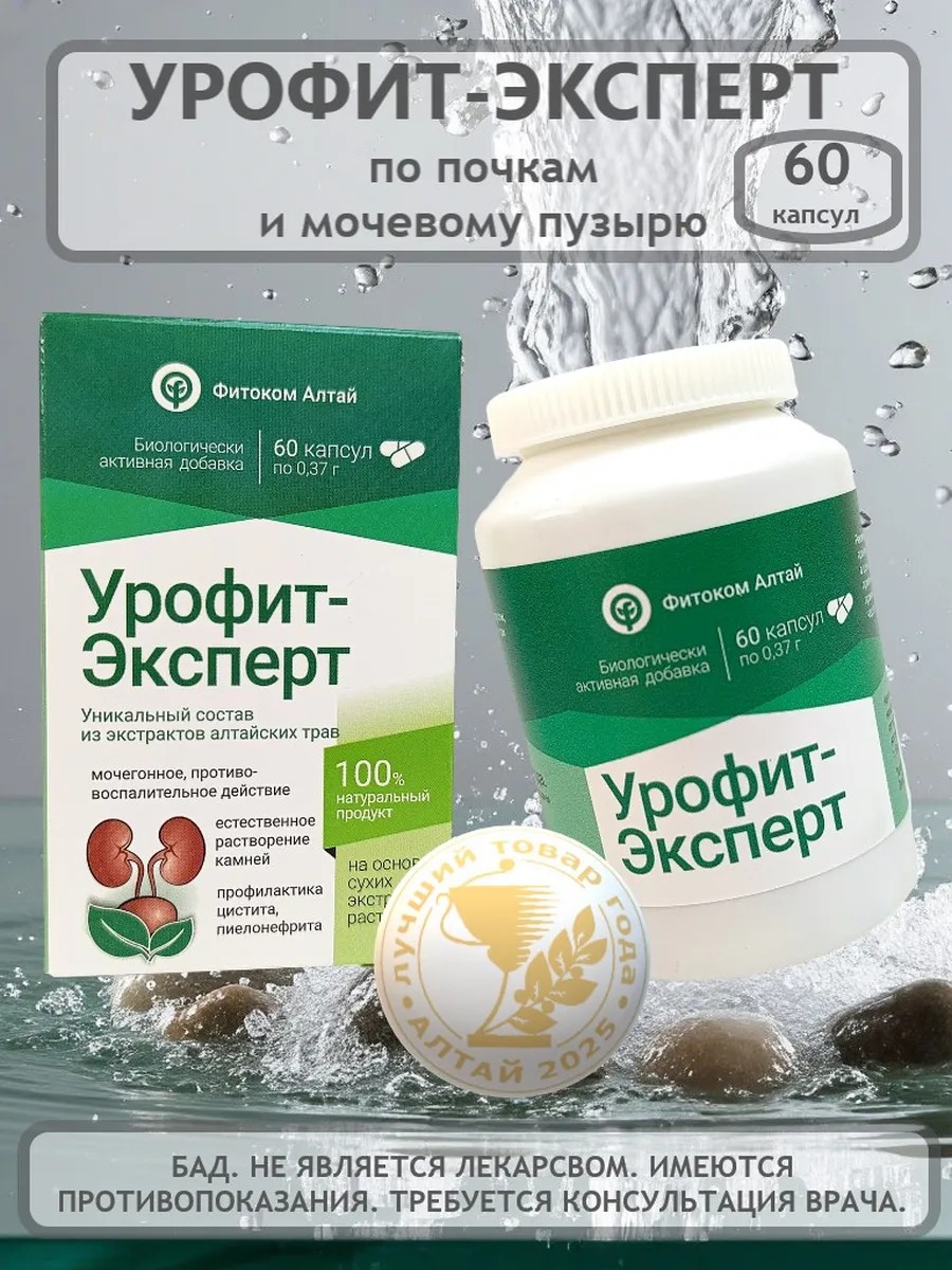 БАД для почек и мочевого пузыря Урофит Эксперт. ТМ Природный лекарь. 60 капсул по 0,37 г