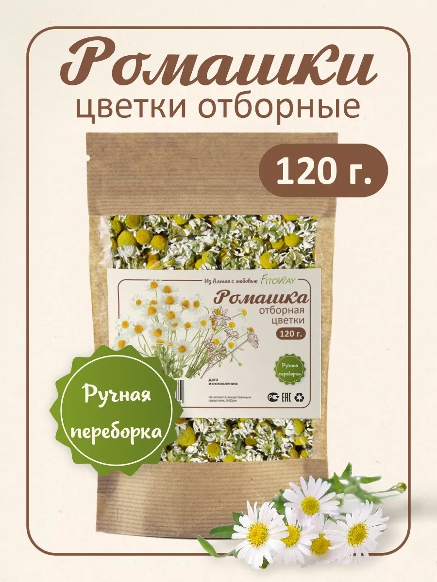 | Комплектация | Ромашка аптечная цветки сушеные россыпью Алтайская трава 120 гр - 1 уп |