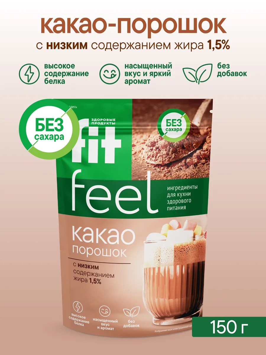 ## KBZhU: 149.5/22/1.5/12; Directions: Thoroughly mix 25 g of cocoa powder in a small amount (150-200 g) of hot water or milk. Let it sit for 2-3 minutes, then add a sweetener to taste. Ideal for making low-calorie confectionery. A natural product obtained from defatted cocoa beans by separating the cocoa butter and grinding the remaining cake without the husk (shell). This cocoa powder contains only 1.5% fat. It has a bright, rich taste and intense aroma. Thanks to its fine grinding, the cocoa powder dissolves perfectly in water and does not form lumps. Suitable for everyday healthy eating in the modern fast-paced lifestyle.