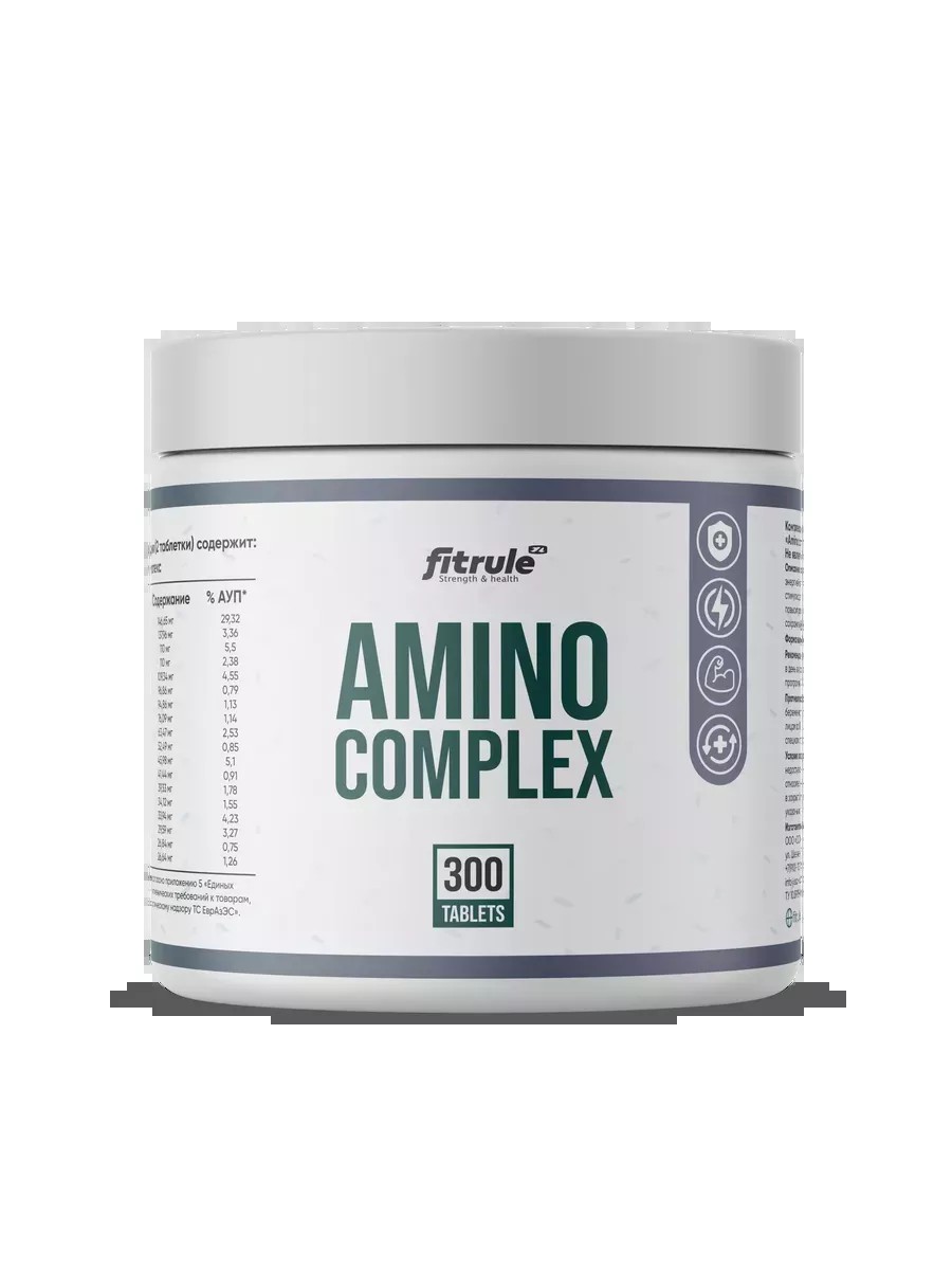 Fitrule Amino Complex 300 tabs support the stable structure and functionality of all organs and systems of the body, ensure cell renewal, and also play a vital role in maintaining biochemical processes.