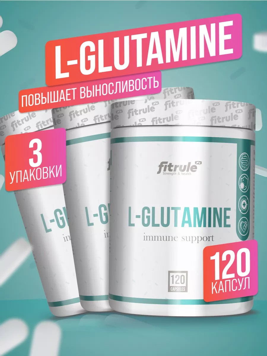 3 БАНКИ Fitrule Glutamine 500mg 120 caps – одна из основных и самых часто встречаемых аминокислот в организме. Входит в состав подавляющего числа белков, в том числе и мышечных. Вместе с BCAA составляет основу сократительных белков мышц – актина и миозина, а также другого мышечного белка – миоглобина.