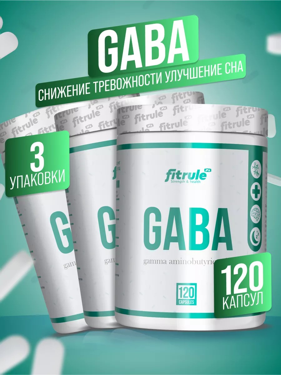 3 БАНКИ Fitrule GABA 120 caps – это гамма-аминомасляная кислота (ГАМК), которая является тормозным нейромедиатором в мозге и отвечает за подавление гиперактивность центральной нервной системы.