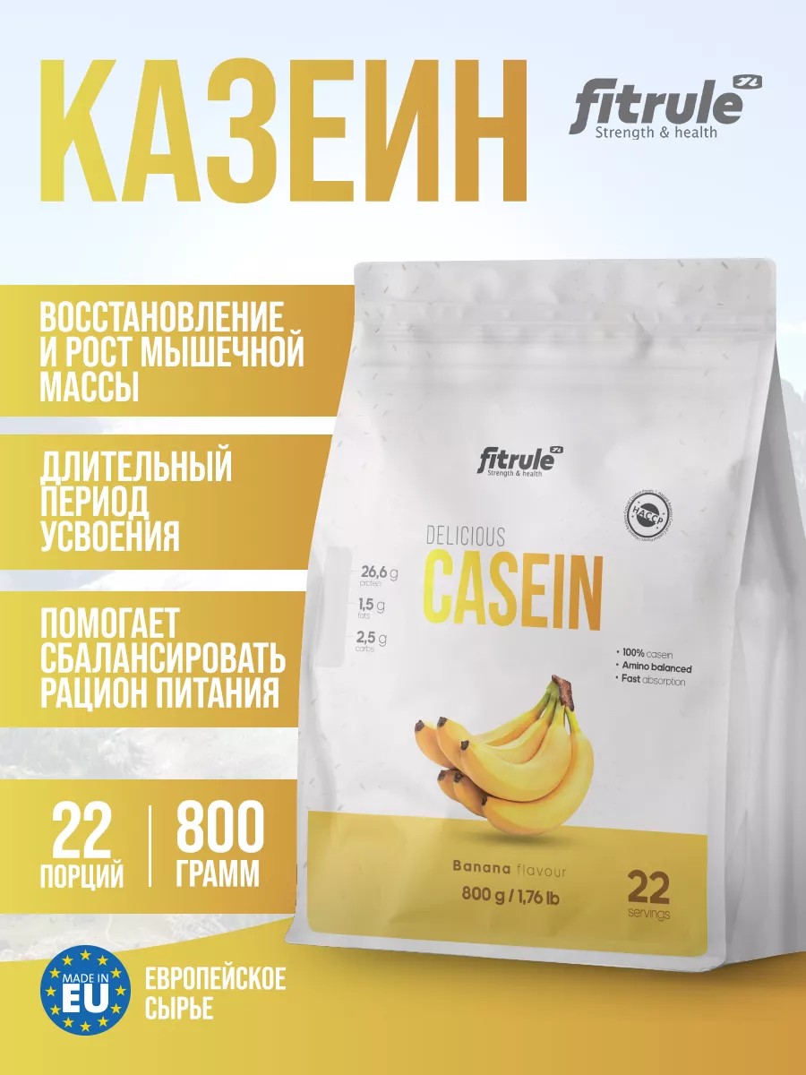Фитрул Казеин 800 грамм не содержит в своем составе сахарозы, а также дополнительно обогащен макроэлементами и витаминами. Козеин идеально подходит для тех, кто имеет длительные паузы между приемами пищи. Казеин мицеллярный это протеин для мышц и протеин для массы, без которого трудно реализовать рост и восстановление. Протеиновый коктейль для мышечной массы предотвращает дефицит белка в рационе и стимулирует набор мышечной массы.