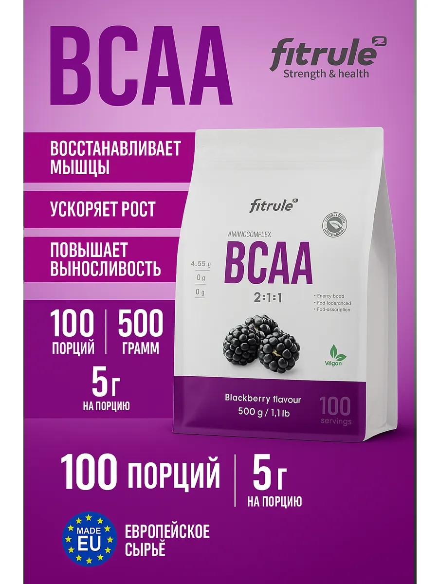 Fitrule BCAA Powder 500г Аминокислоты 2 1 1 Ежевика
