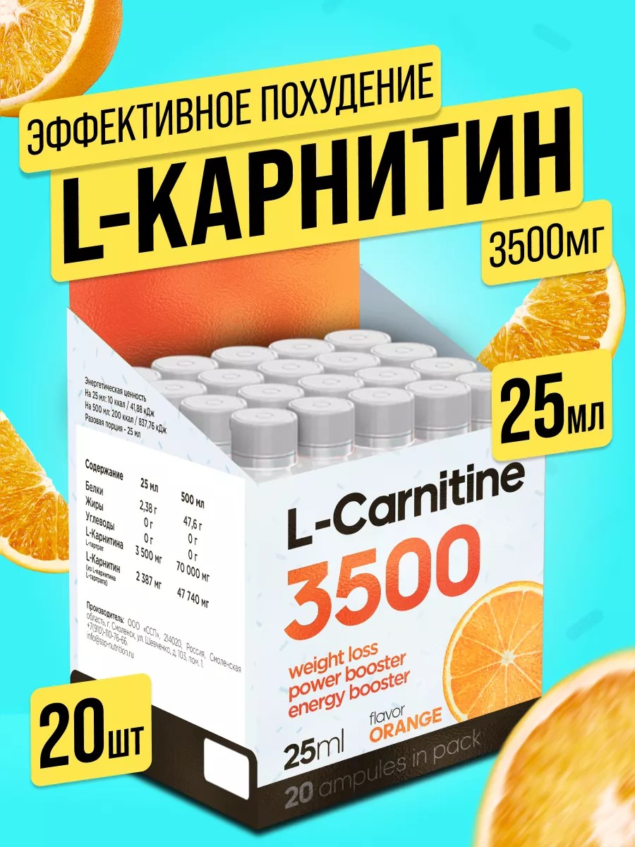 Fitrule Л-карнитин жидкий ампулы 3500mg 25ml 20 шт, апельсин