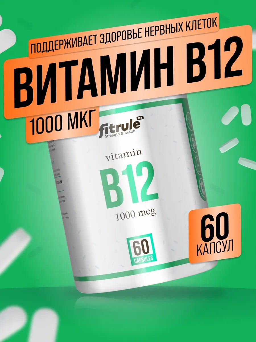 Fitrule Vitamin B12 1000mcg 60 caps is a water-soluble vitamin - cyanocobalamin, which is not synthesized in the body, but only comes from food.