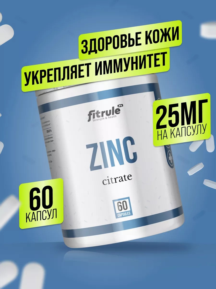 Fitrule Zinc Citrate 60 caps – цинк является одним из важнейших микроэлементов, который входит в состав более 400 ферментов, тем самым поддерживая метаболизм и работу большинства систем организма.