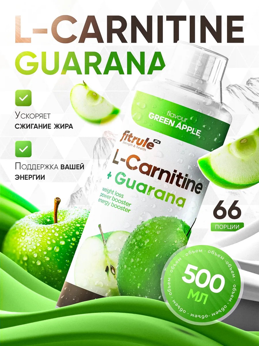 Fitrule L-Carnitine+Guarana 500 ml – это л-карнитин плюс гуарана в жидкой форме. Л-карнитин выполняет транспортную функцию, то есть переносит жирные кислоты в митохондрии в мышечной (и не только) клетке, где они превращаются в энергию. Таким образом, л-карнитин стимулирует процесс жиросжигания.