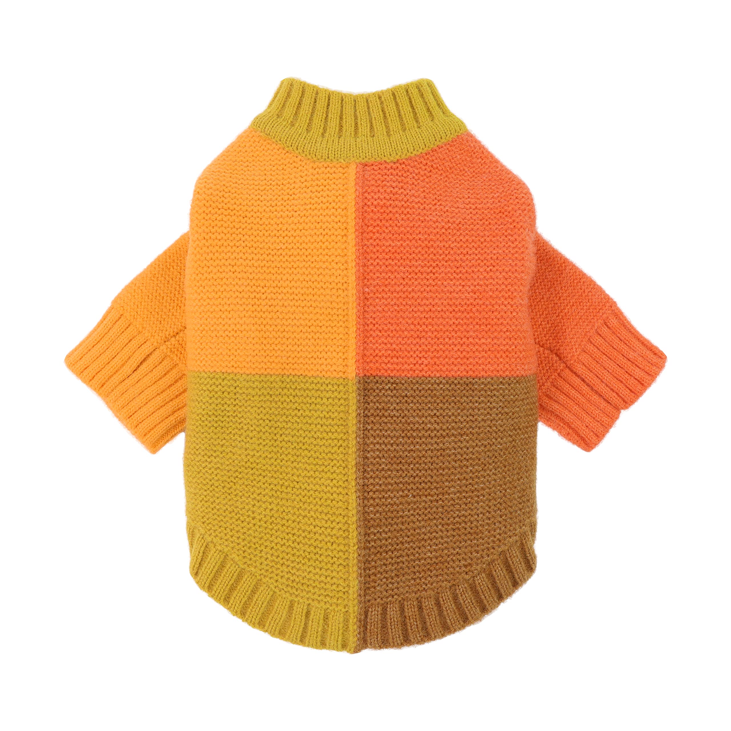 Priority designed with comfort and practicality. Easy on and off in pullover design. Ensuring hassle-free potty breaks with higher cutting around the belly. Every style we design is wear-tested on our pet models to ensure the best fit. WARM CELEBRATION. "Never-go-wrong" sweater for Thanksgiving events in color block design. Smart choice to to stay warm for fall/winter activities, such as parties, daily walks and photoshoots. THANKSGIVING STYLE. Thanksgiving color block in orange, yellow and brown. Perfect combination of colors presents a Thanksgiving sense. Staple for fall/winter that embodies sustainability and style. ADDITIONAL WARM. Crafted in 80% chemical fiber and 20% fleece. Unique fabrics provide softness and warmth for better wearing experiences. Limited-edition piece that should be added to your pet's winter wardrobe. FOR SMALL DOGS OR CATS. Please priority follows the chest size. Size Small, fits 10" back, 14" chest. Recommended for Pomeranian, Maltese, Bichon, Shih Tzu, Min Pin.