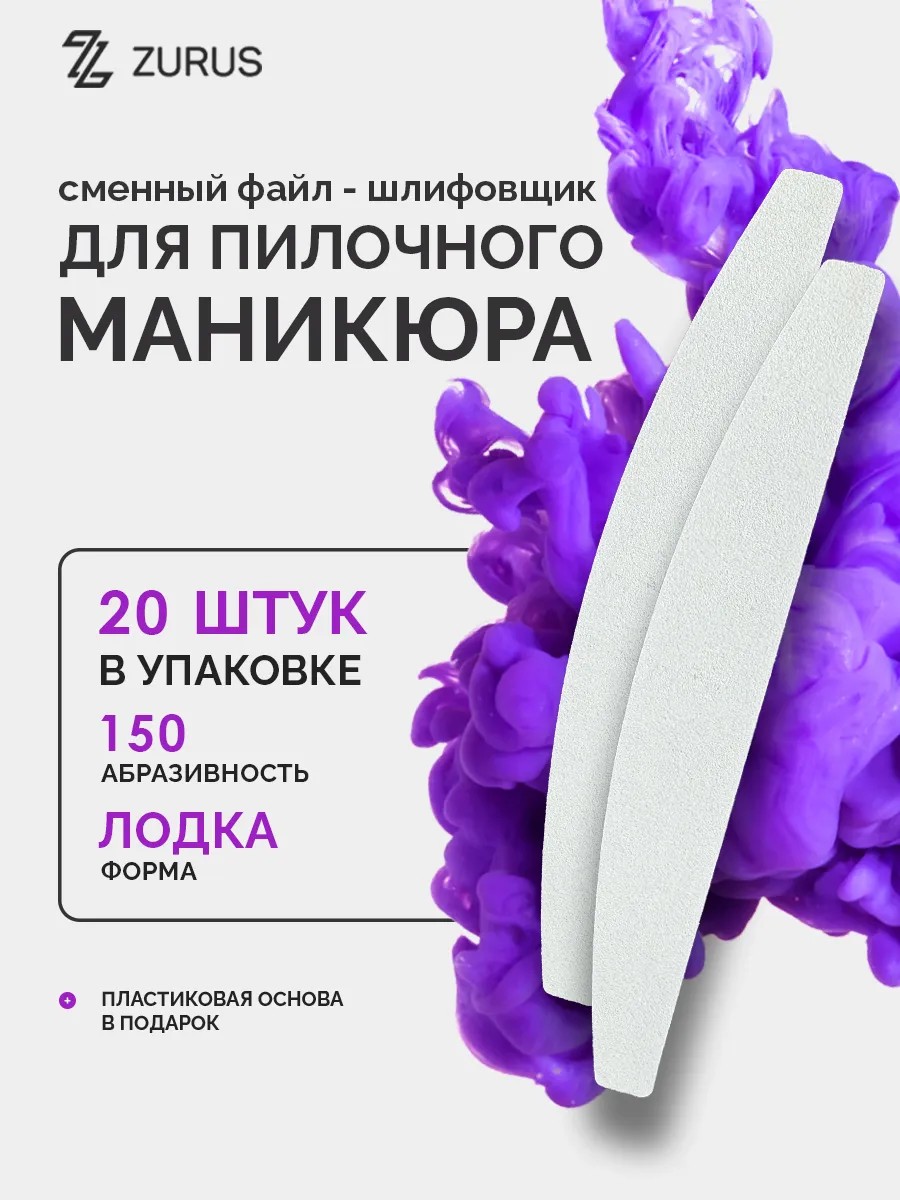 20 cменных файлов (шлифовщик) для маникюра ZURUS + 1 пластиковая основа в подарок