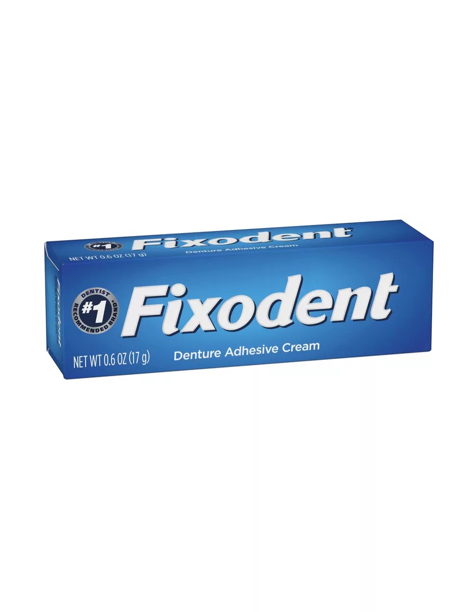 Fixodent cream helps prevent slipping and prevents food from getting trapped between dentures and gums.