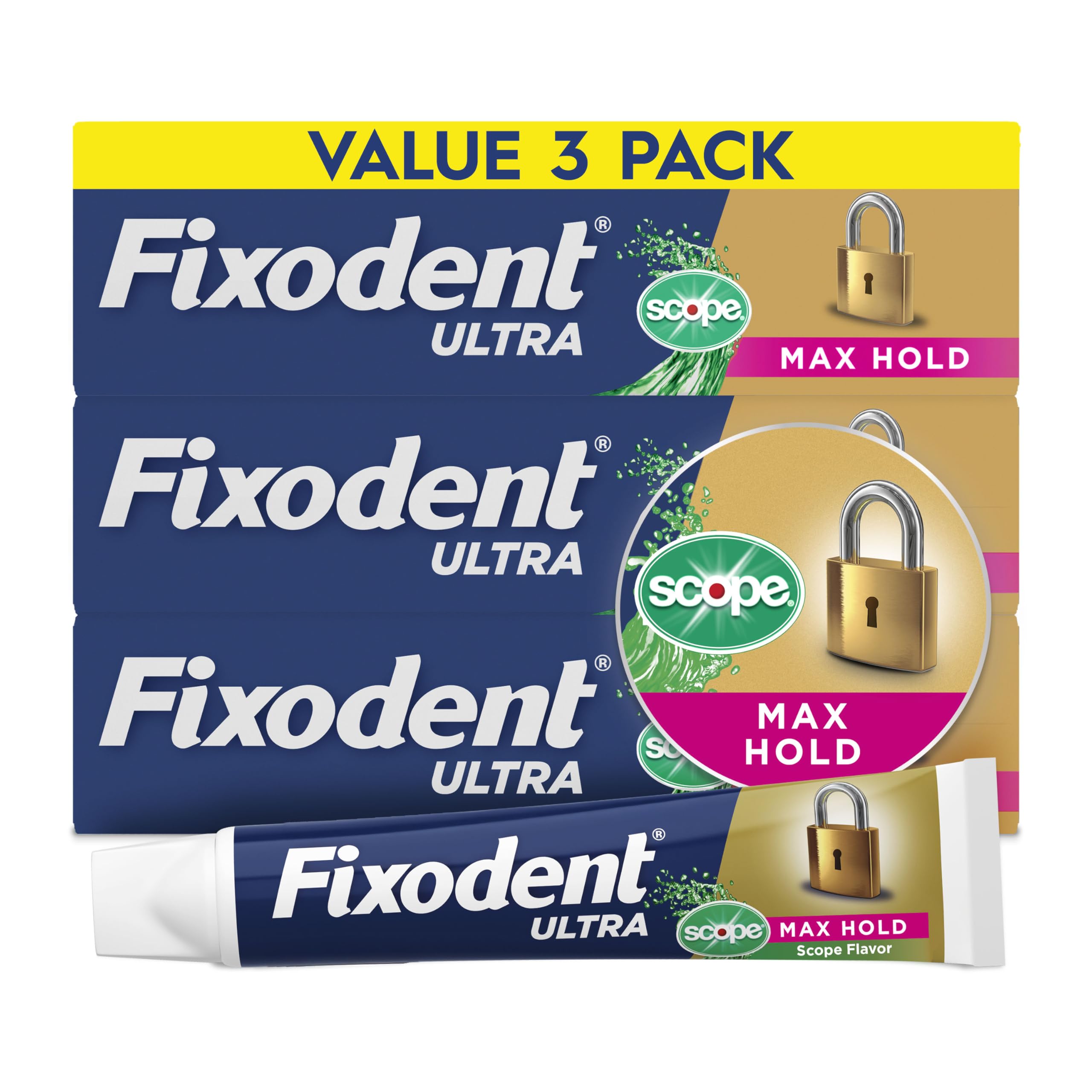 Fixodent Ultra Max Hold Plus Scope Secure Denture Adhesive 1.8oz 3 Pack