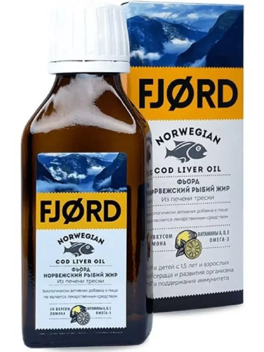Рыбий жир со вкусом лимона – продукт, изготовленный в Норвегии из высококачественного сырья.В составе БАД содержится 100% норвежская северо-восточная арктическая треска, а так же натуральный лимонный ароматизатор, который устраняет неприятный запах и привкус.Продукт можно применять как дополнительный источник полиненасыщенных жирных кислот омега-3, в том числе эйкозапентаеновой кислоты (EPA) и докозагексаеновой кислоты (DHA), витаминов А, D и E.Принимая этот продукт, вы можете восполнить недостаток витаминов А, Е и D.Основные преимущества рыбьего жира:· в основе сырья для производства рыбьего жира FJORD лежит 100% норвежская северо-восточная арктическая треска· имеет приятный лимонный аромат и обладает едва ощутимым вкусом, его хорошо воспринимают дети и взрослые· удобная дозировка – 1 ложку раз в день· подходит для детей с 1,5 лет· способствует поддержанию функции сердечно-сосудистой системы· улучшает иммунитет· замедляет развитие диабета· восполняет дефицит витаминов А, Е и D· активизирует выработку гормона тестостеронаРЕКОМЕНДАЦИИ ПО ПРИМЕНЕНИЮ:детям 1,5-3 года по 0,5 мл (17 капель),детям 4-6 лет по 1 мл (34 капли),детям 7-10 лет по 1,5 мл (51 капля),детям 11-17 лет по 2 мл (68 капель),взрослым по 5 мл (1 чайную ложку) в день.Содержание и пищевая ценность в 0,5 мл (17 капель)Энергетическая ценность 4,1ккал 17,1 кДжБелки, г 0 гЖиры 0,462 гУглеводы, г 0 гОмега 3 120 мг, в том числеэйкозапентаеновая кислота (EPA) - 38 мг,докозагексаеновая кислота (DHA) - 52 мг,Витамин А (ретинола пальмитат) - 180 мкг,Витамин D (холекальциферол) - 1,5 мкг,Витамин E (DL-альфа-токоферол) - 1 мг.Не превышать установленную рекомендуемую дозу. Не должен употребляться как заменитель пищи.Не использовать после истечения срока годности. После истечения срока годности утилизировать как пищевые отходы.