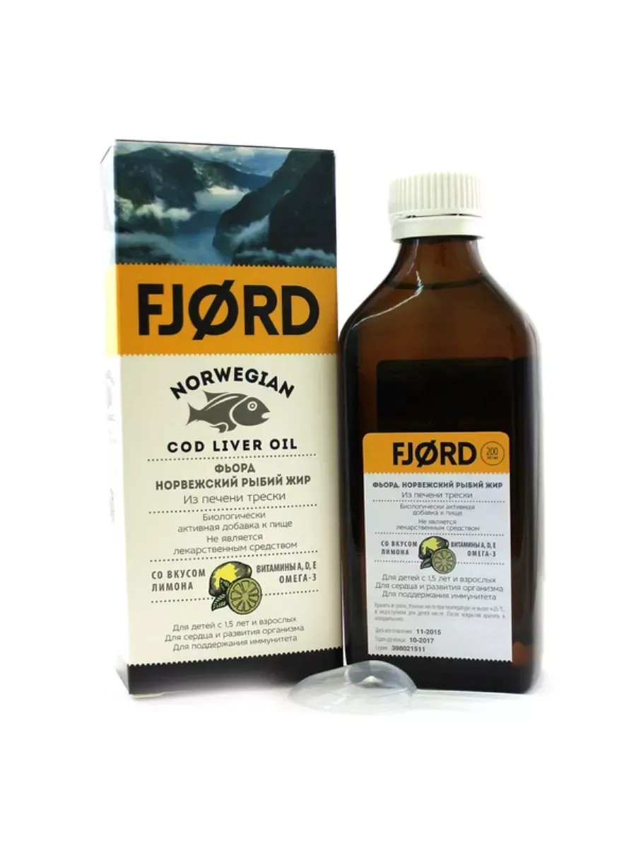 Рыбий жир со вкусом лимона – продукт, изготовленный в Норвегии из высококачественного сырья.В составе БАД содержится 100% норвежская северо-восточная арктическая треска, а так же натуральный лимонный ароматизатор, который устраняет неприятный запах и привкус.Продукт можно применять как дополнительный источник полиненасыщенных жирных кислот омега-3, в том числе эйкозапентаеновой кислоты (EPA) и докозагексаеновой кислоты (DHA), витаминов А, D и E.Принимая этот продукт, вы можете восполнить недостаток витаминов А, Е и D.Основные преимущества рыбьего жира:· в основе сырья для производства рыбьего жира FJORD лежит 100% норвежская северо-восточная арктическая треска· имеет приятный лимонный аромат и обладает едва ощутимым вкусом, его хорошо воспринимают дети и взрослые· удобная дозировка – 1 ложку раз в день· подходит для детей с 1,5 лет· способствует поддержанию функции сердечно-сосудистой системы· улучшает иммунитет· замедляет развитие диабета· восполняет дефицит витаминов А, Е и D· активизирует выработку гормона тестостеронаРЕКОМЕНДАЦИИ ПО ПРИМЕНЕНИЮ:детям 1,5-3 года по 0,5 мл (17 капель),детям 4-6 лет по 1 мл (34 капли),детям 7-10 лет по 1,5 мл (51 капля),детям 11-17 лет по 2 мл (68 капель),взрослым по 5 мл (1 чайную ложку) в день.Содержание и пищевая ценность в 0,5 мл (17 капель)Энергетическая ценность 4,1ккал 17,1 кДжБелки, г 0 гЖиры 0,462 гУглеводы, г 0 гОмега 3 120 мг, в том числеэйкозапентаеновая кислота (EPA) - 38 мг,докозагексаеновая кислота (DHA) - 52 мг,Витамин А (ретинола пальмитат) - 180 мкг,Витамин D (холекальциферол) - 1,5 мкг,Витамин E (DL-альфа-токоферол) - 1 мг.Не превышать установленную рекомендуемую дозу. Не должен употребляться как заменитель пищи.Не использовать после истечения срока годности. После истечения срока годности утилизировать как пищевые отходы.