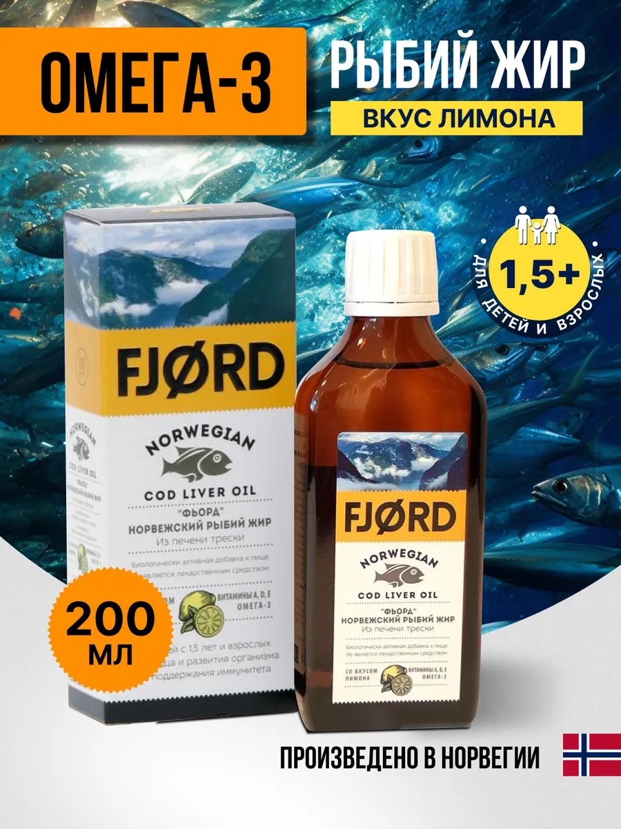 Fjord Жидкий норвежский рыбий жир Омега 3 лимон 200мл
