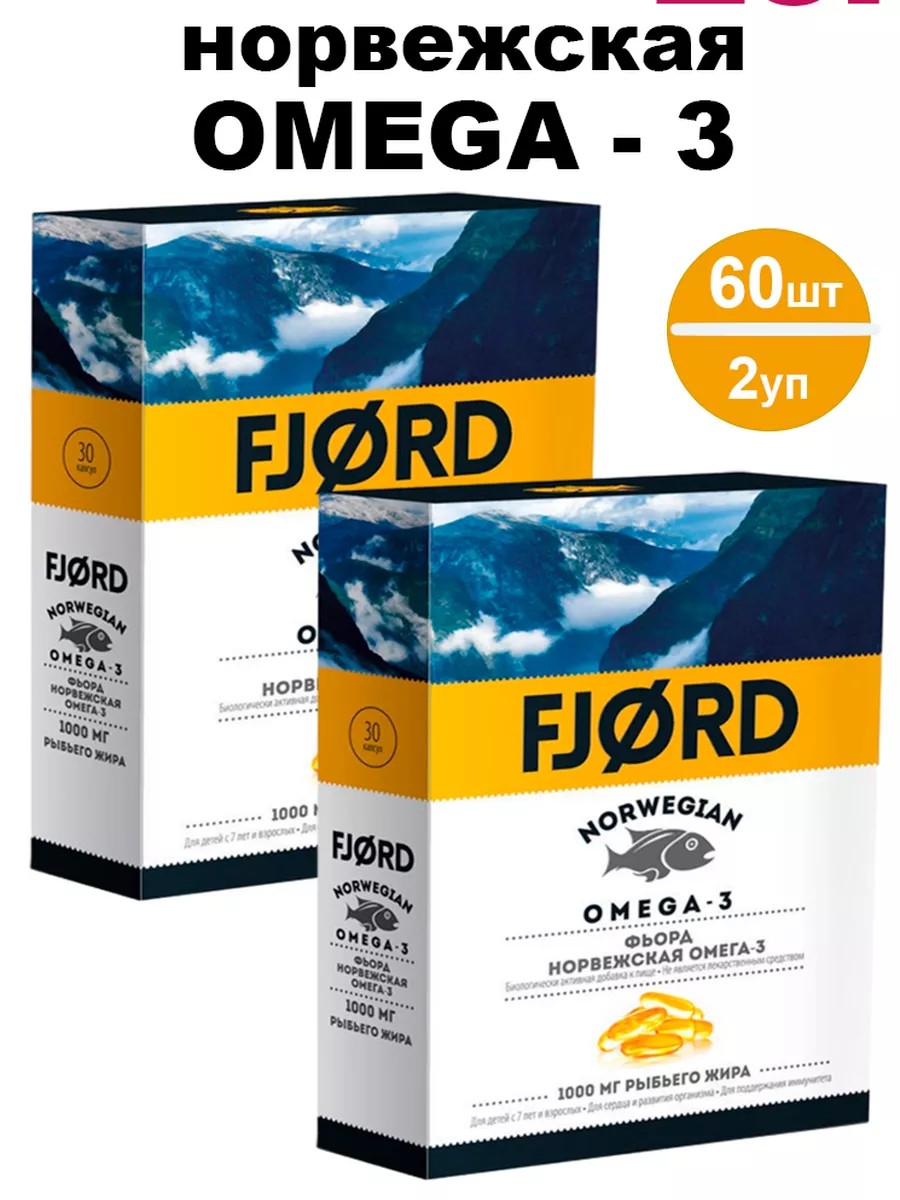 ФЬОРД Норвежская Омега-3/ FJORD Norwegian Omega-3 - мягкие желатиновые капсулы в блистере, упакованные в картонную коробку.